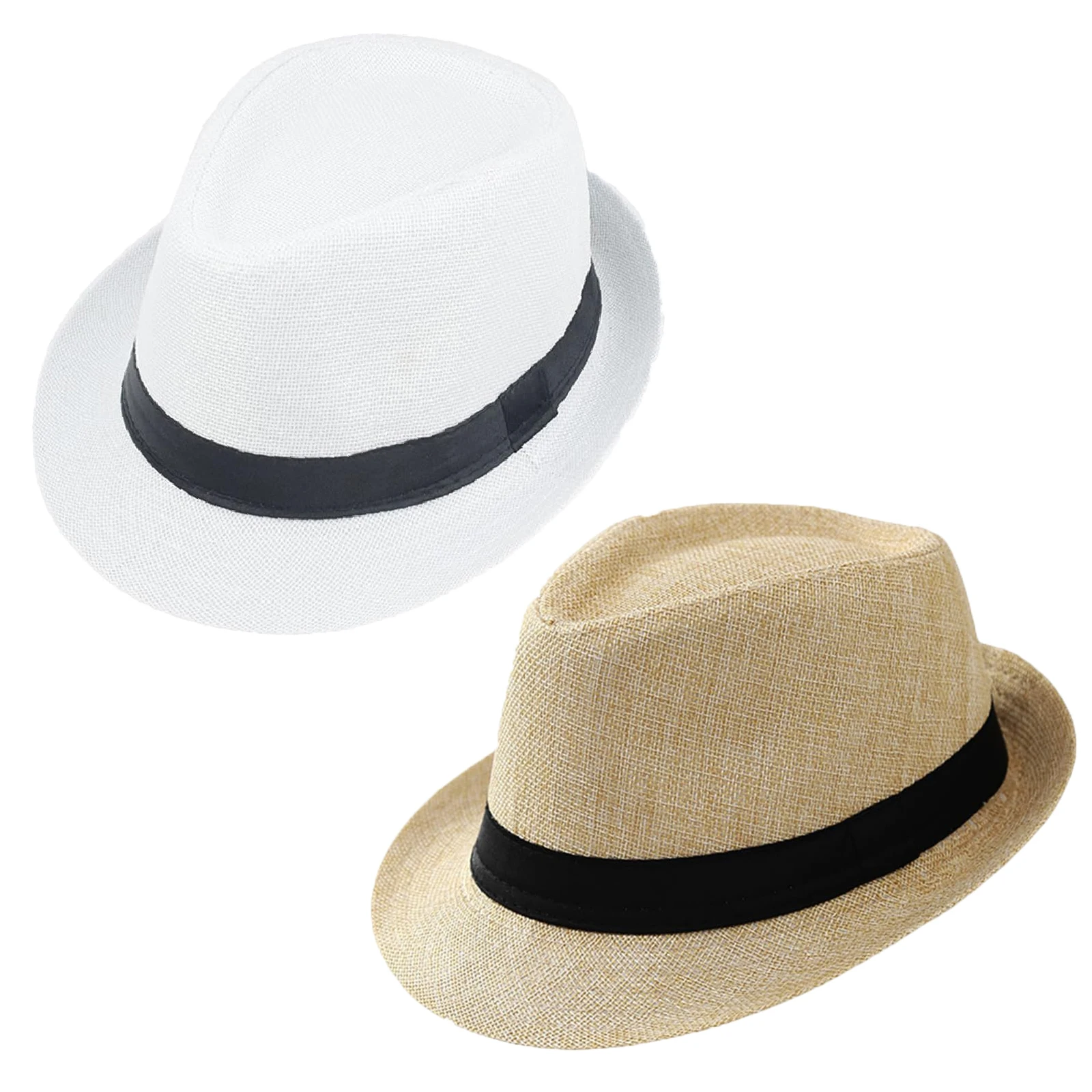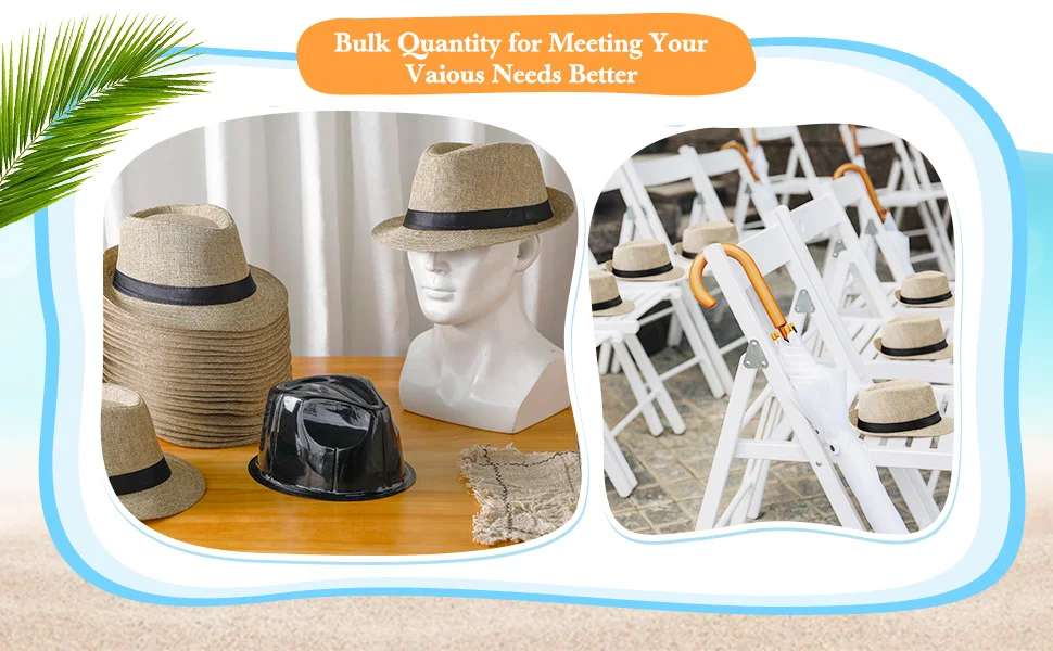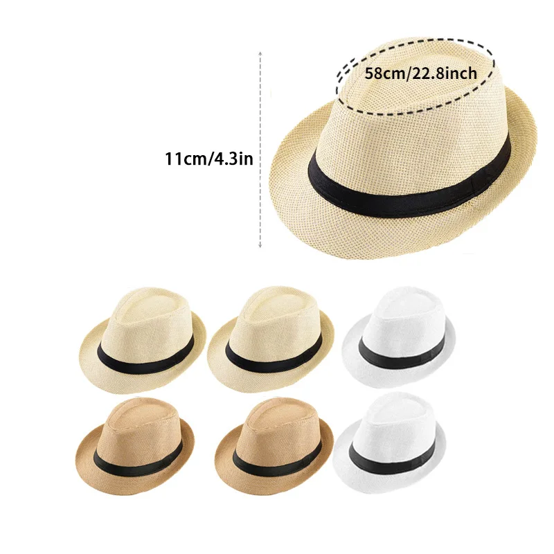 6-96Pcs Straw Hat for Men Women Fedora Panama Roll Up Hats Wedding Short Brim Summer Beach Hat Havana Nights Party Favors