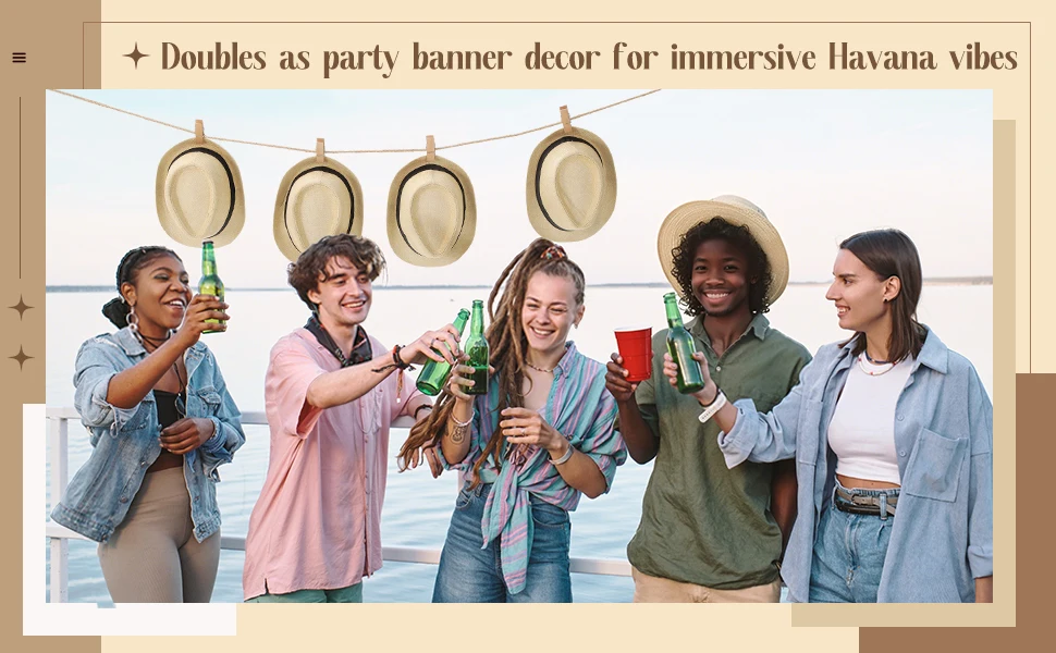 Be the first to review “6-96Pcs Straw Hat for Men Women Fedora Panama Roll Up Hats Wedding Short Brim Summer Beach Hat Havana Nights Party Favors”