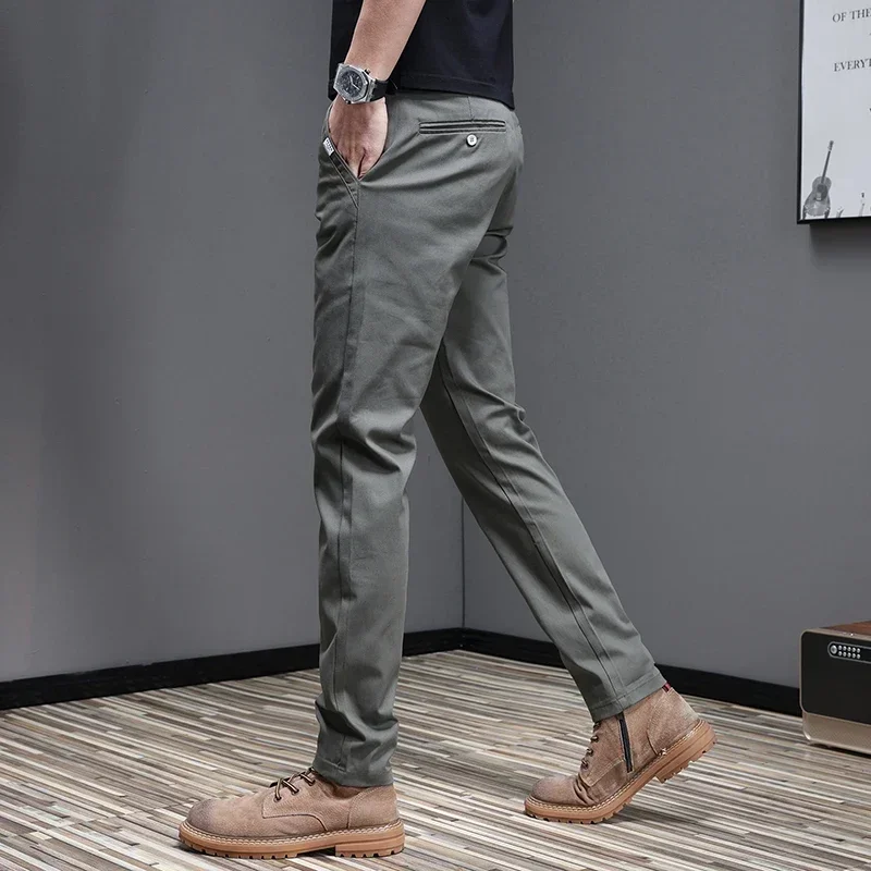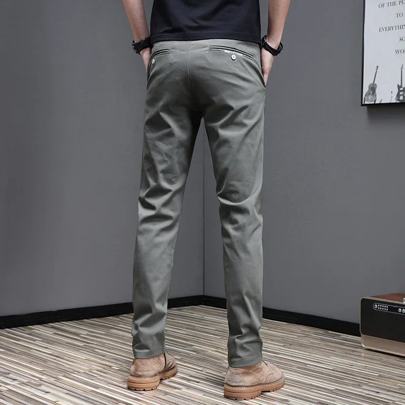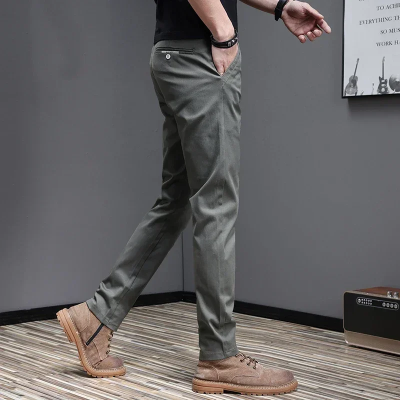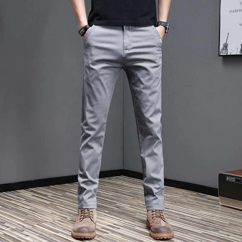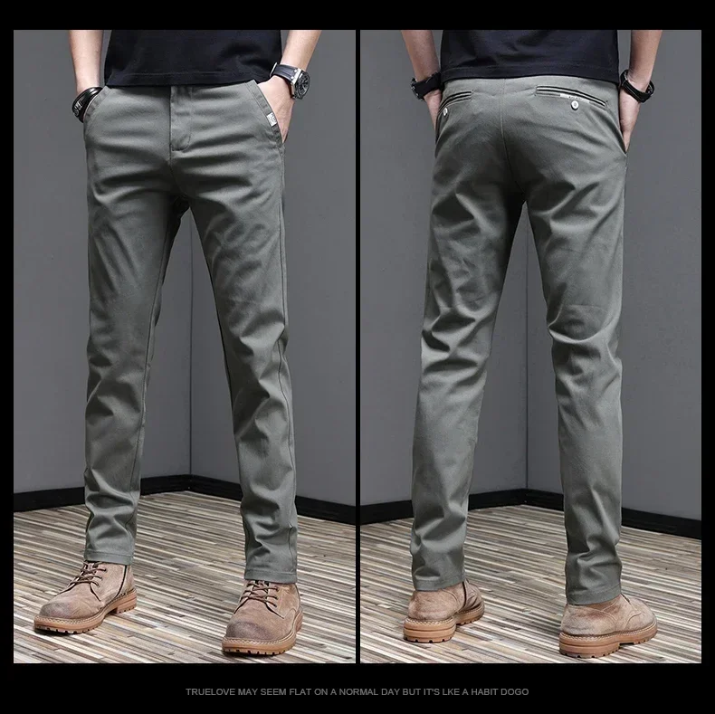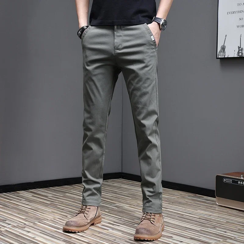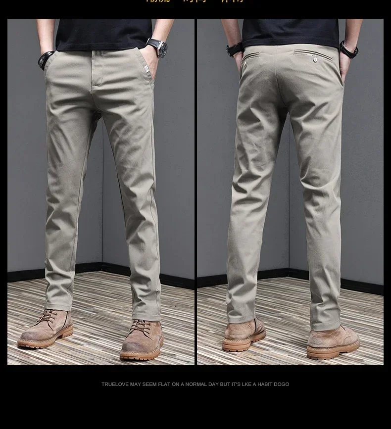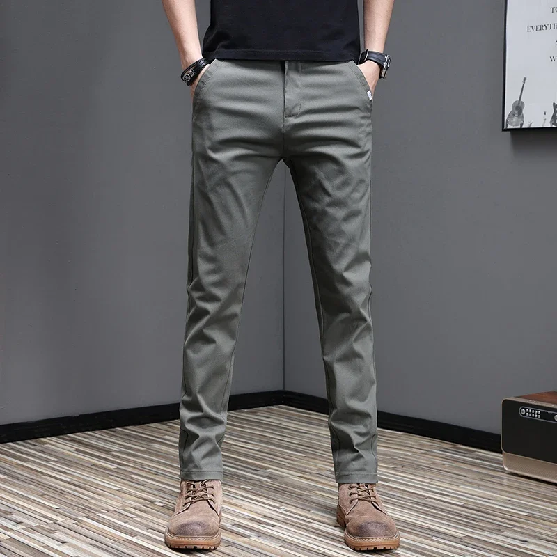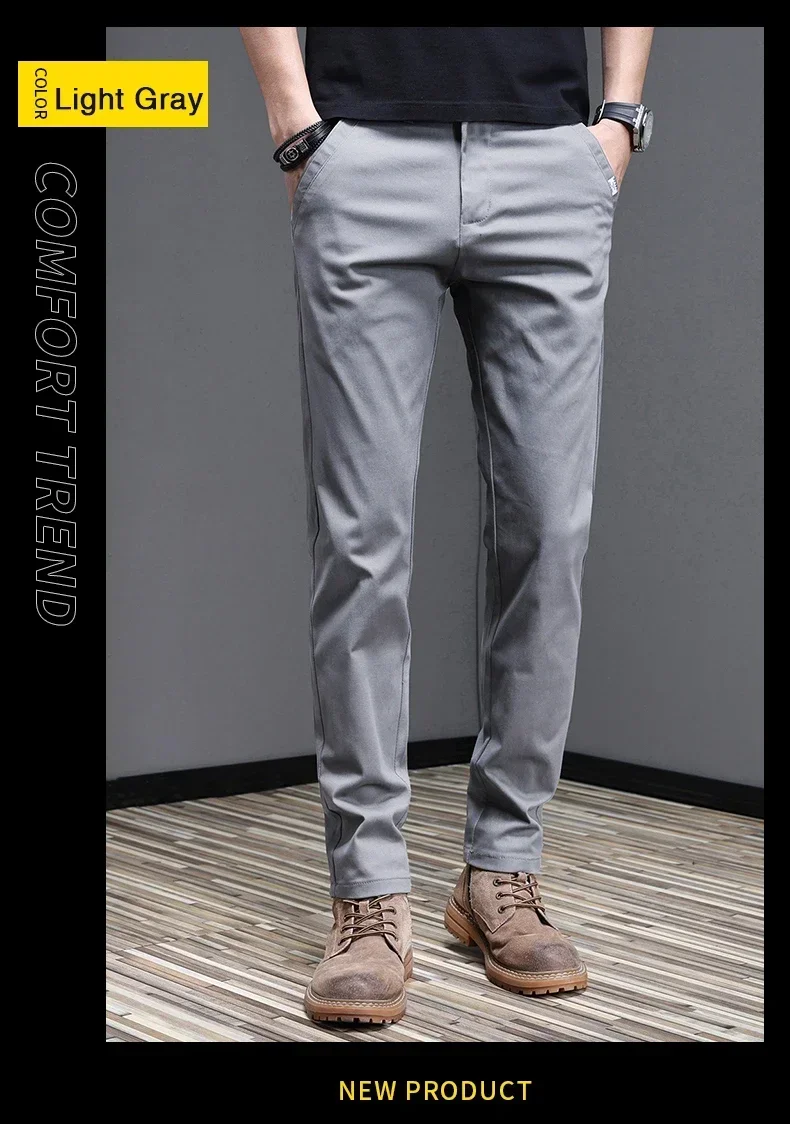 97.8% Cotton 2025 Spring Autumn Men’s Casual Pants Business Korean Fashion Slim Fit Stretch Gray Black Khaki Trousers Male Pant
