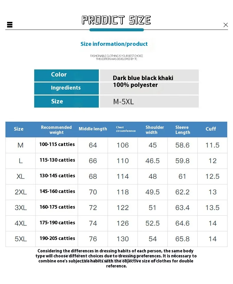 | Size | AS(L)-(EU)XS, AS(XL)-(EU)S, AS(2XL)-(EU)M, AS(3XL)-(EU)L, AS(M)-(EU)XXS, AS(4XL)-(EU)XL, AS(5XL)-(EU)2XL |