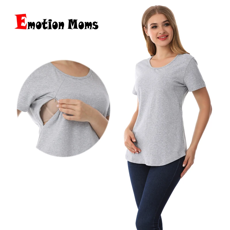Emotion Moms New Women Maternel T-Shirt Short Sleeve Stretch Cotton Tops Zipper Breastfeeding Loose Pregnant Clothes Big Size