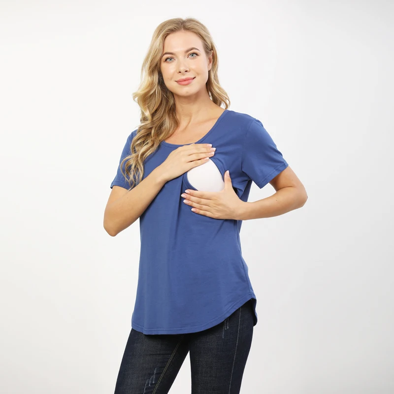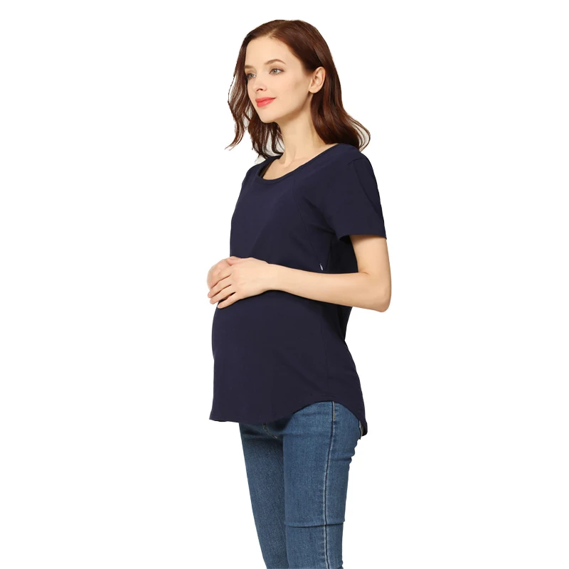 New Women Maternel T-Shirt Short Sleeve Stretch Cotton Tops Zipper Breastfeeding Loose Pregnant Clothes Big Size