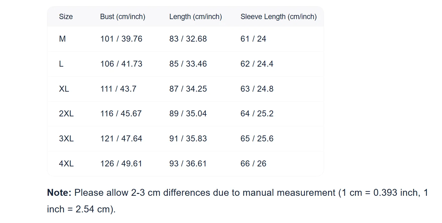 | Size | M, XL, L, XXXL, XXL, 4XL |