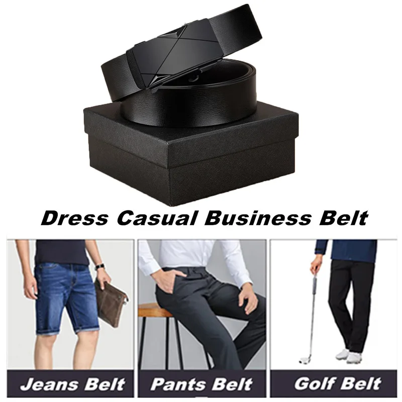 OYIFAN Fashion Men’s Belt Men’s Genuine Leather Belt Automatic Buckle Ratchet Belt Random Adjustment