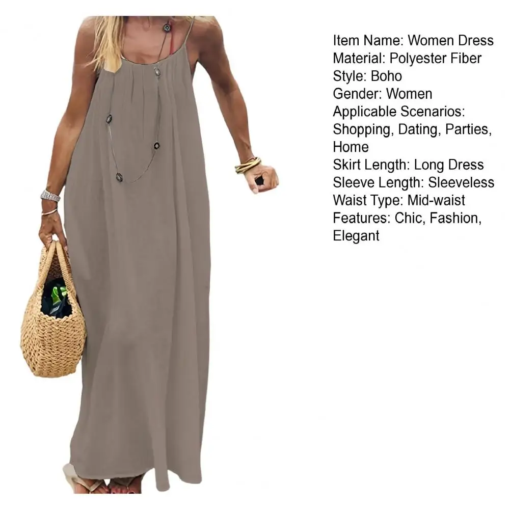 Women's Backless Cami Dress Summer Casual Sleeveless Boho Beach Maxi Dress Spaghetti Strap Vacation Long Sundress with Back Tie