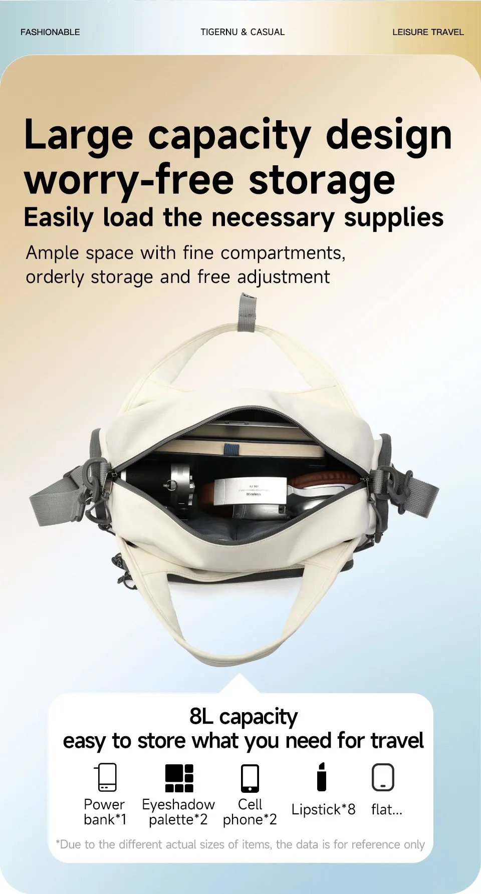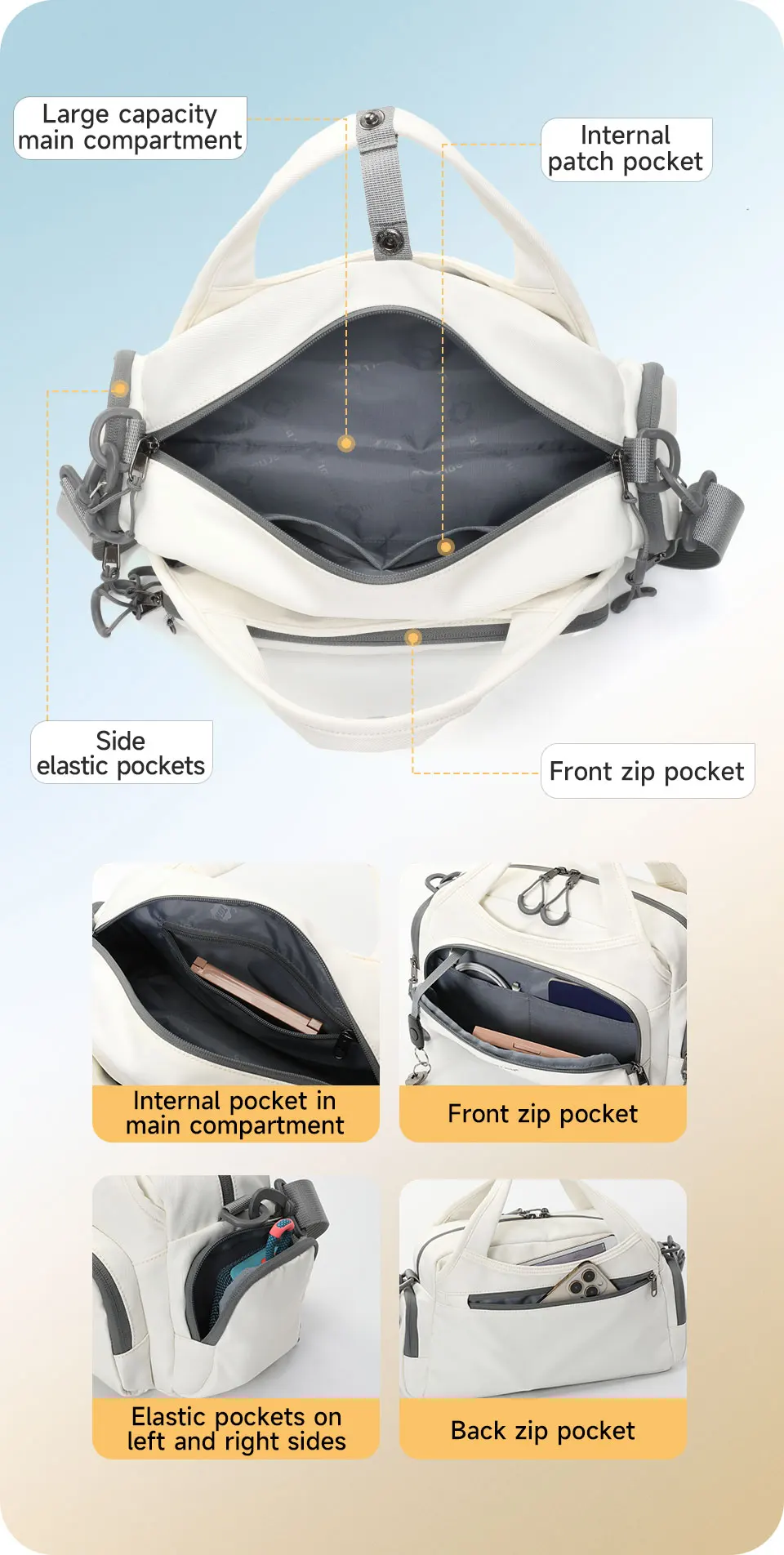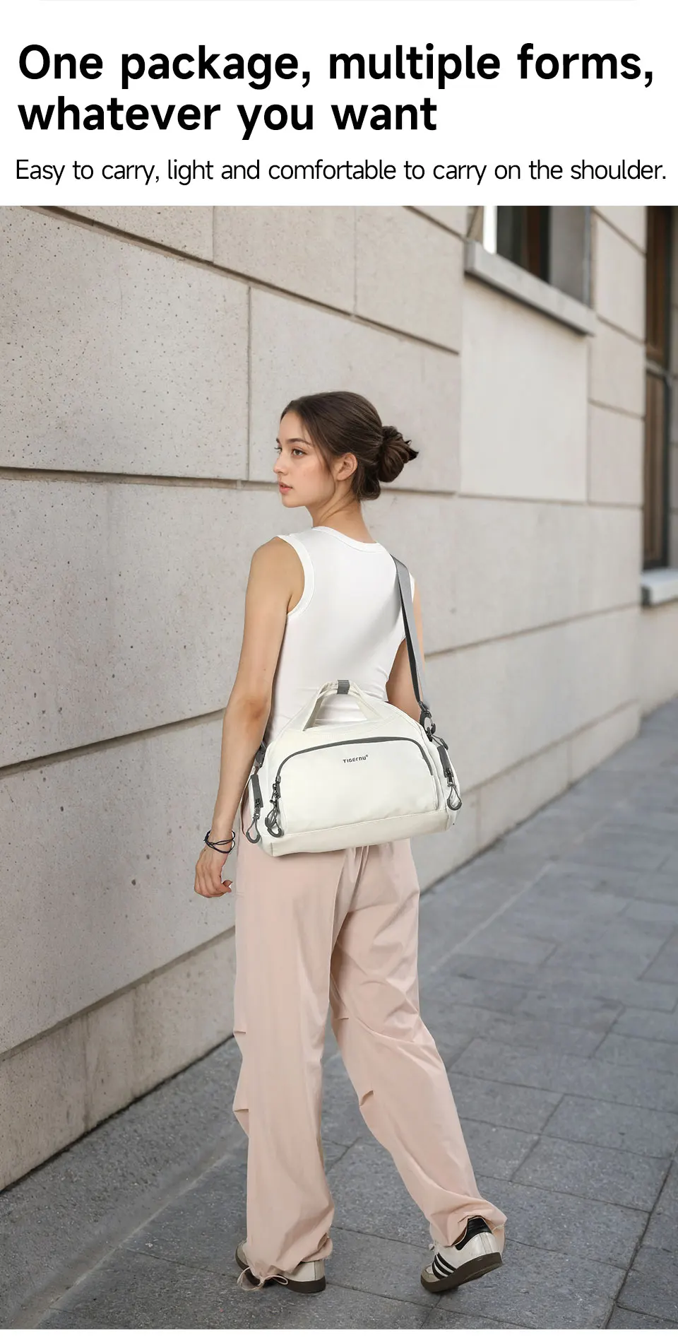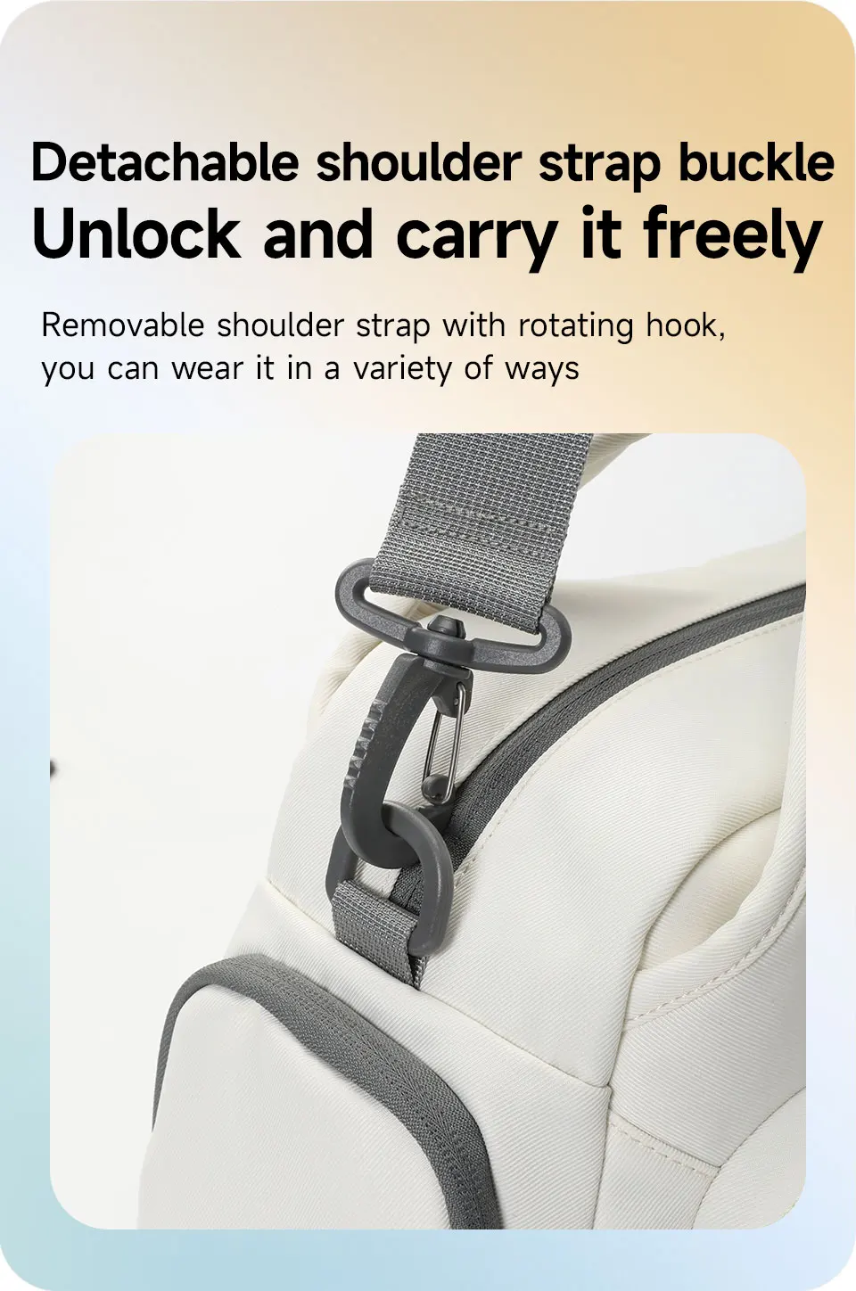 4. Other convenient details design, such as comfortable luggage strap, adjustable shoulder strap, back zipper pocket, Three types to wear and so on.