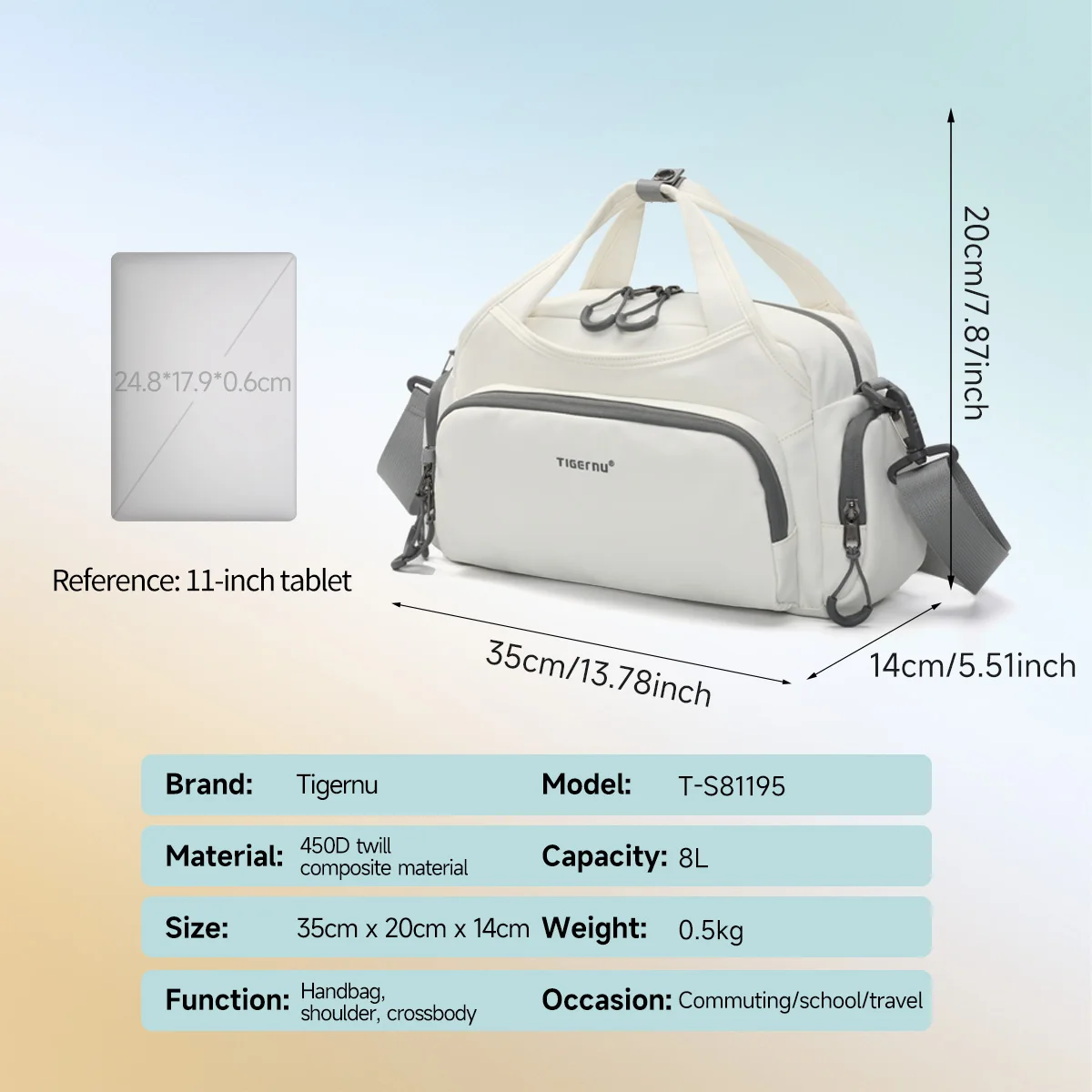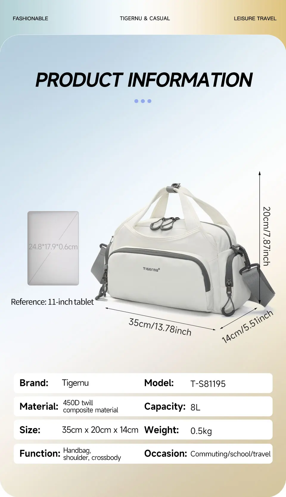 3. Light weight with multiple pocket. Reasonable partition design & Multi-functional pockets. Main pocket, zipper side pocket, back pocket and front pockets. Fit for 11inch tablet.