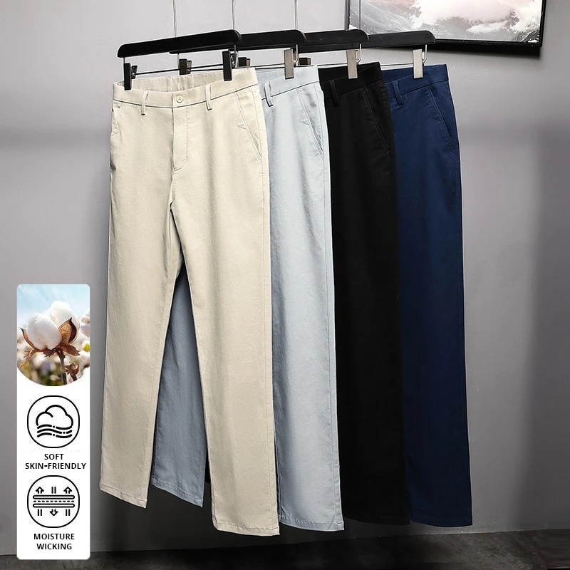 Top Grade 98% Cotton New Brand Korean Streetwear Casual Fashion Slim Fit Long Pants Straight Pencil Trousers Men’s Clothing
