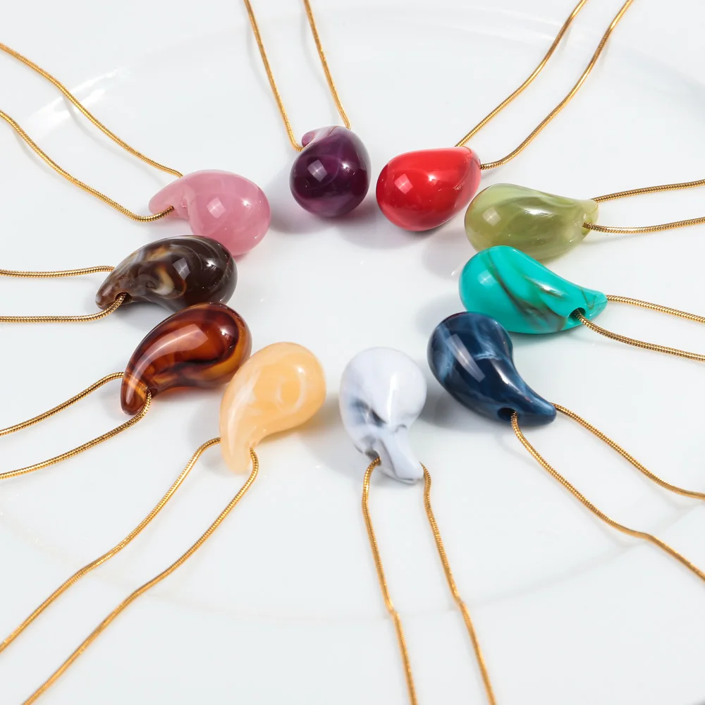 Trendy Stainless Steel Tarnish-Proof 16K Gold-Plated Necklace: Women’s Fashion Chubby Waterdrop Chunky Pendant Necklace