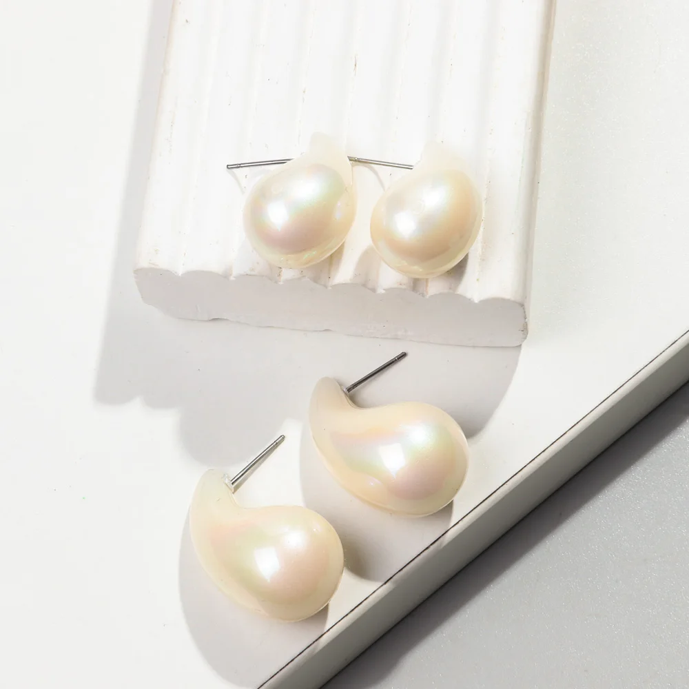 Trendy Acrylic Pearl Drop Earrings for Women: Vintage Irregular Droplet Shaped Earring Chic Jewelry