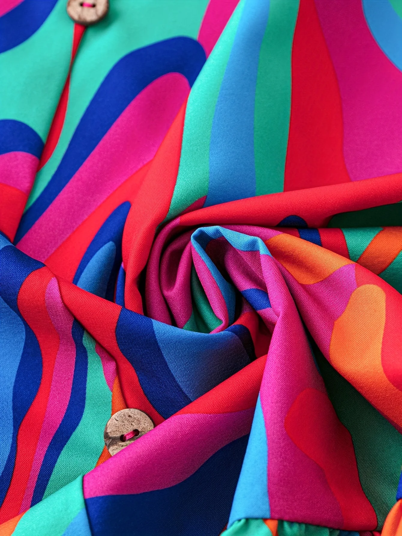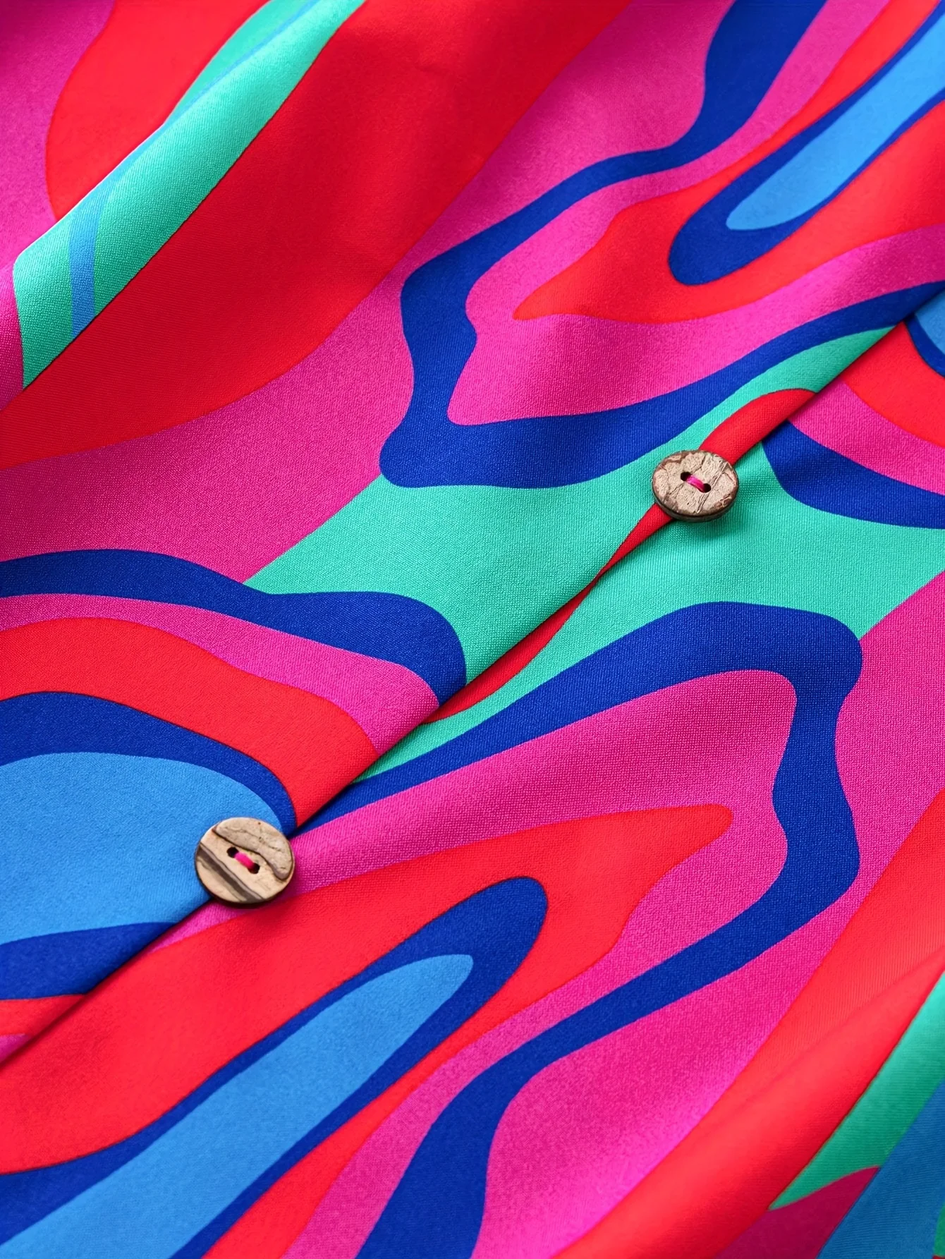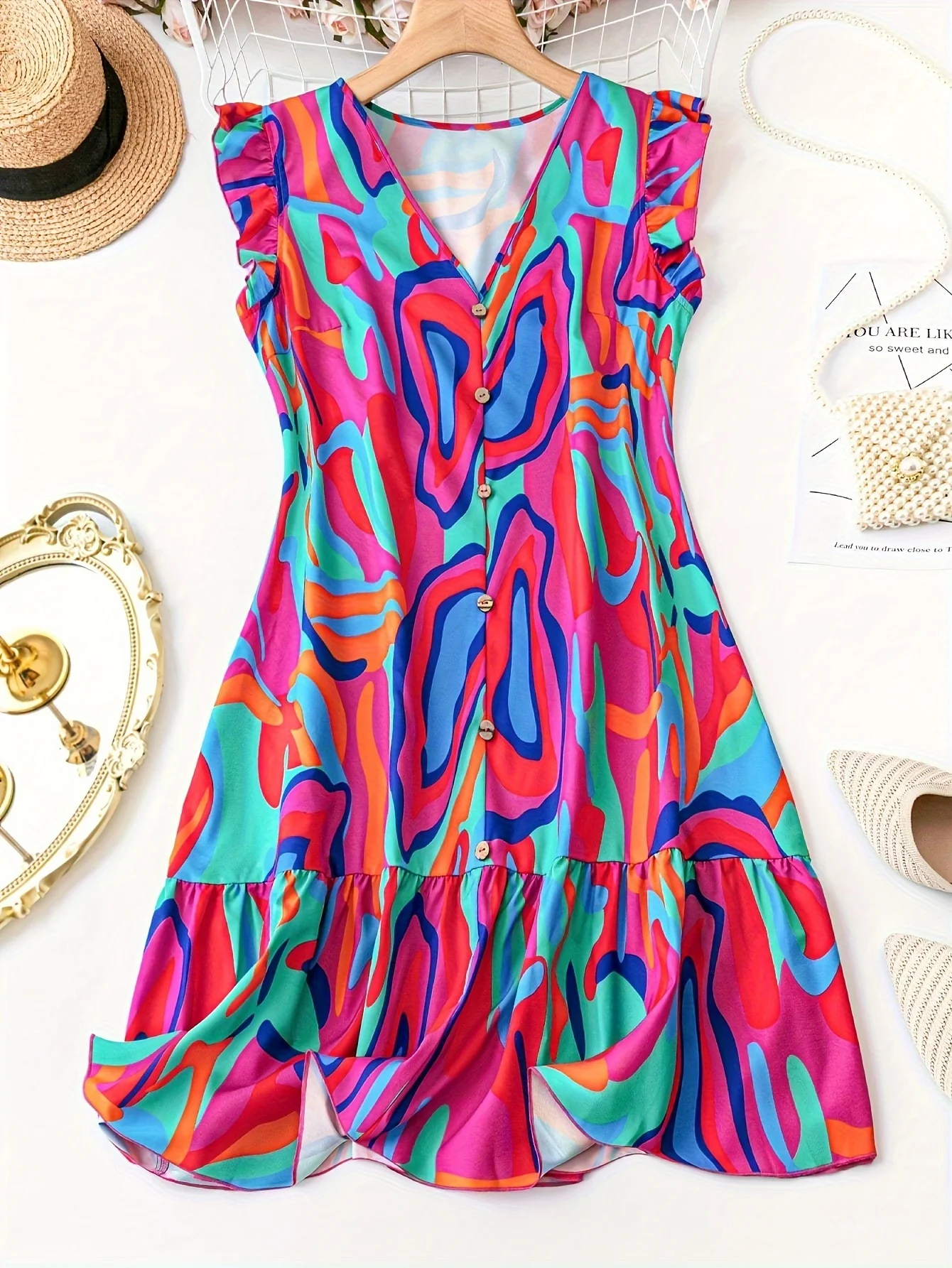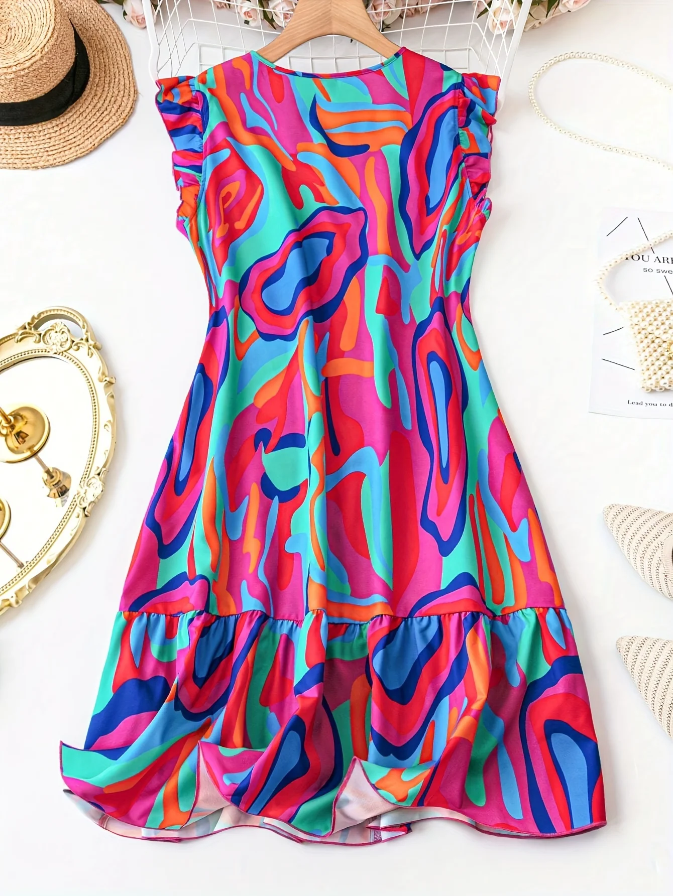 Vacation Print Flowing Sleeve Ethereal Dress Women’s Casual Summer Maxi Dress Bohemian Style Floral Print Loose Fit Dress