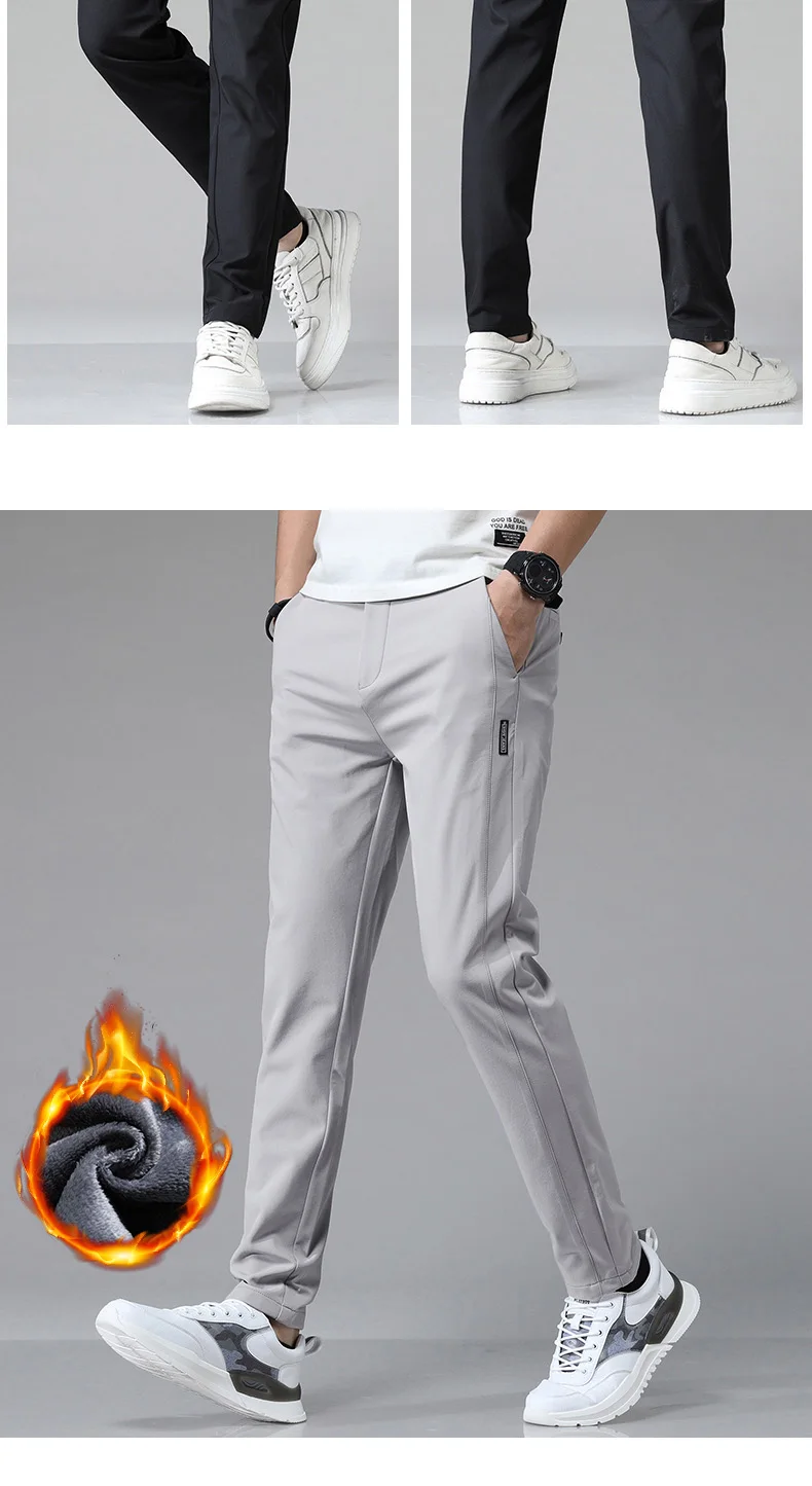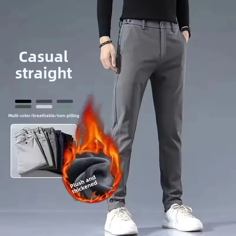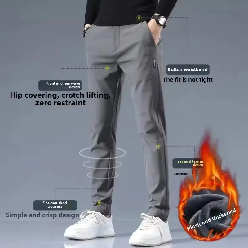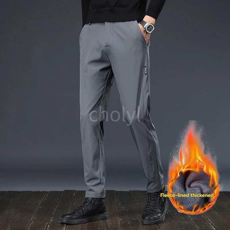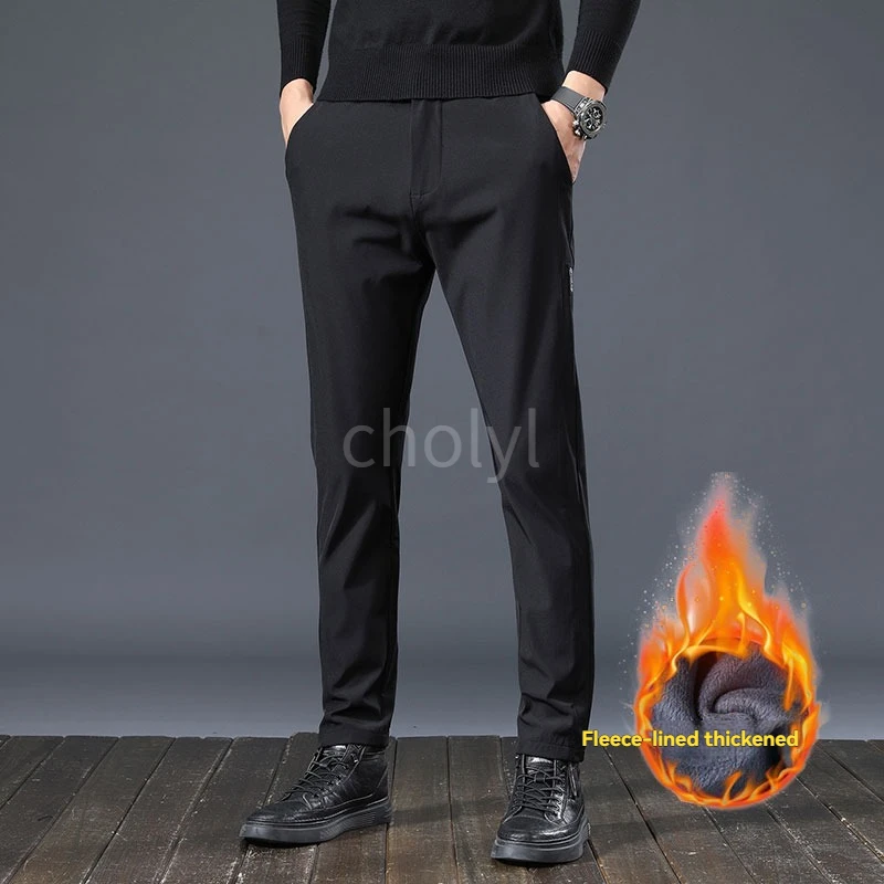 Winter velvet Casual Pants Men Thick Business Stretch Slim Elastic Waist Jogger Outdoors Korean Classic Fleece Trousers Male