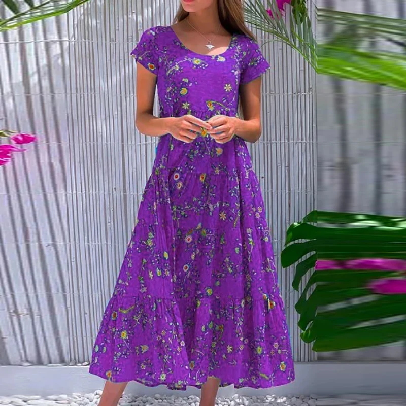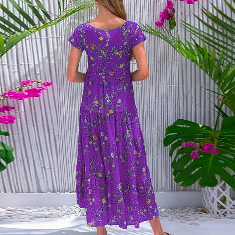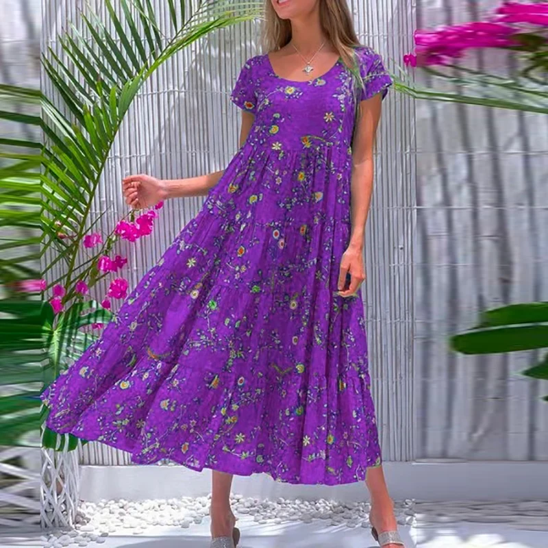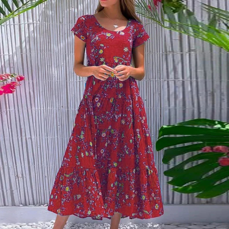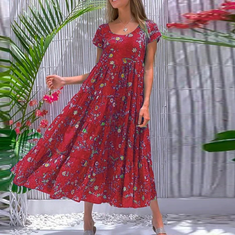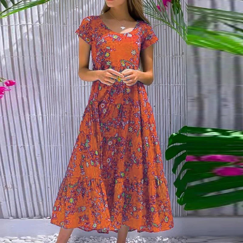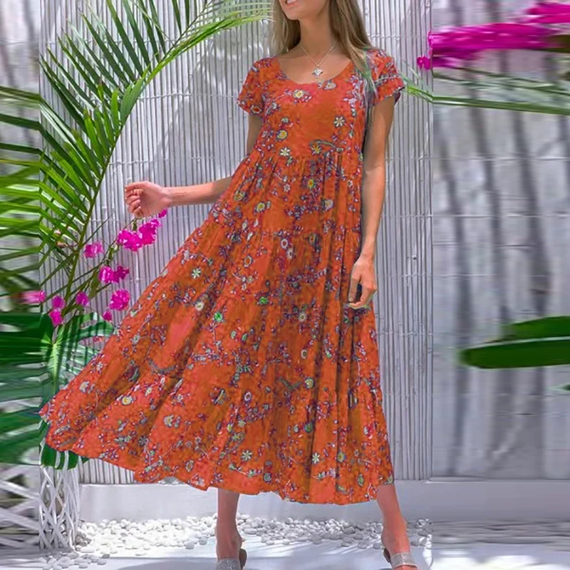 Women Flower Print Dress Boho A-Line Long Dress Women Summer Vintage Maxi Dresses Casual Loose Holiday Party Dress 2023