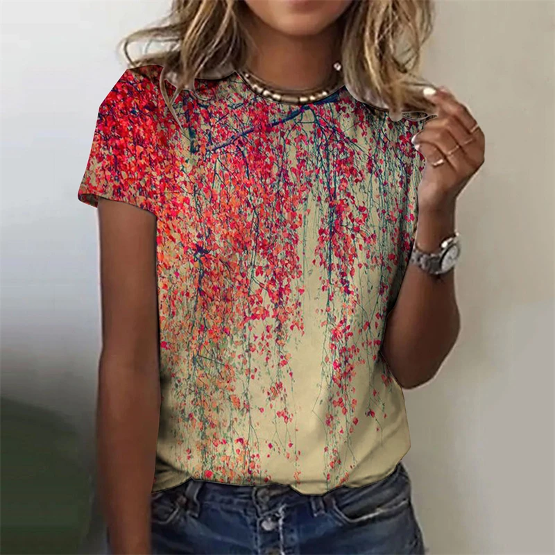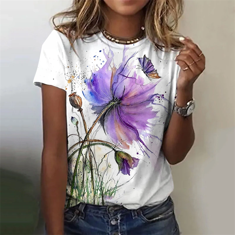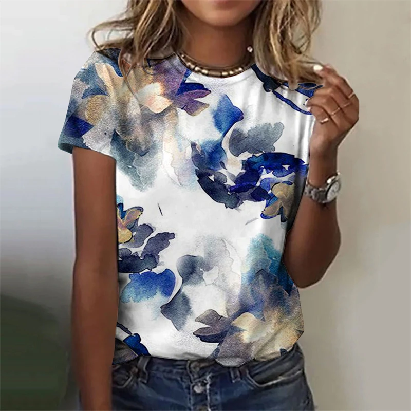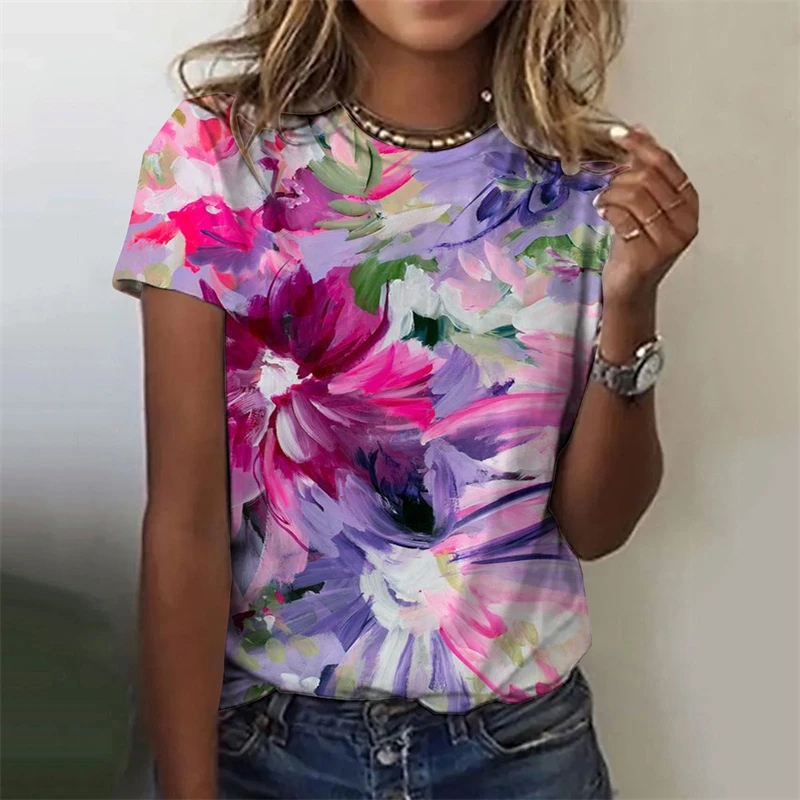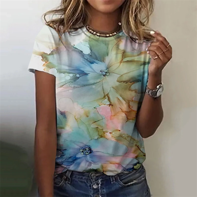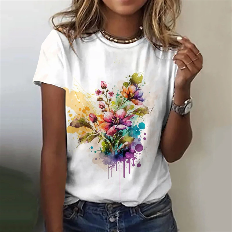 Women’s T-Shirts Flowers Fashion Print O Neck Short Sleeve Tees O-Neck Personality Women Summer Harajuku Loose Female Clothing