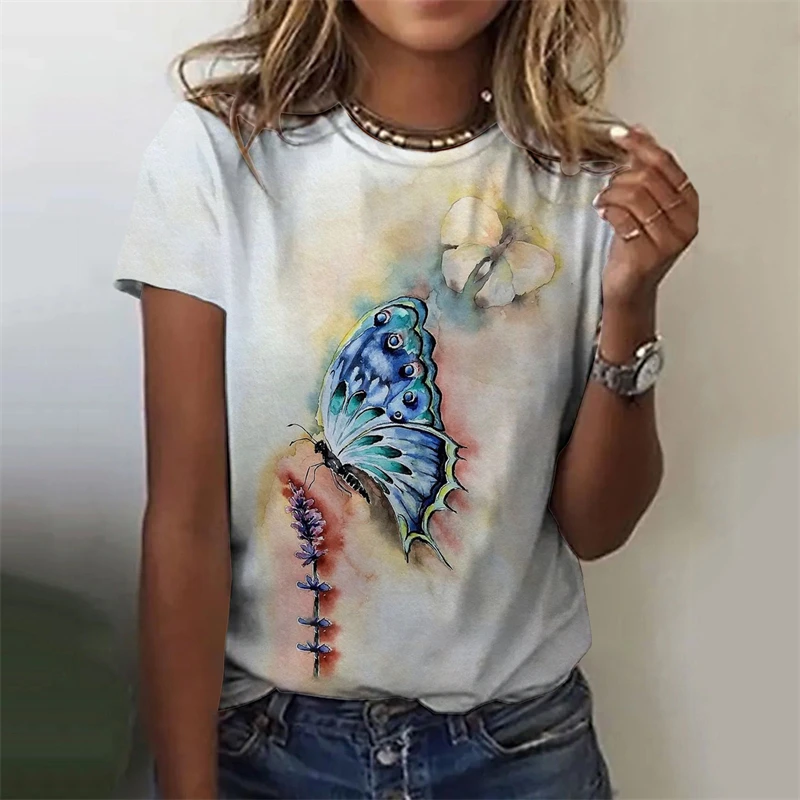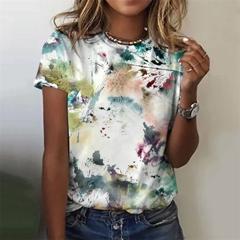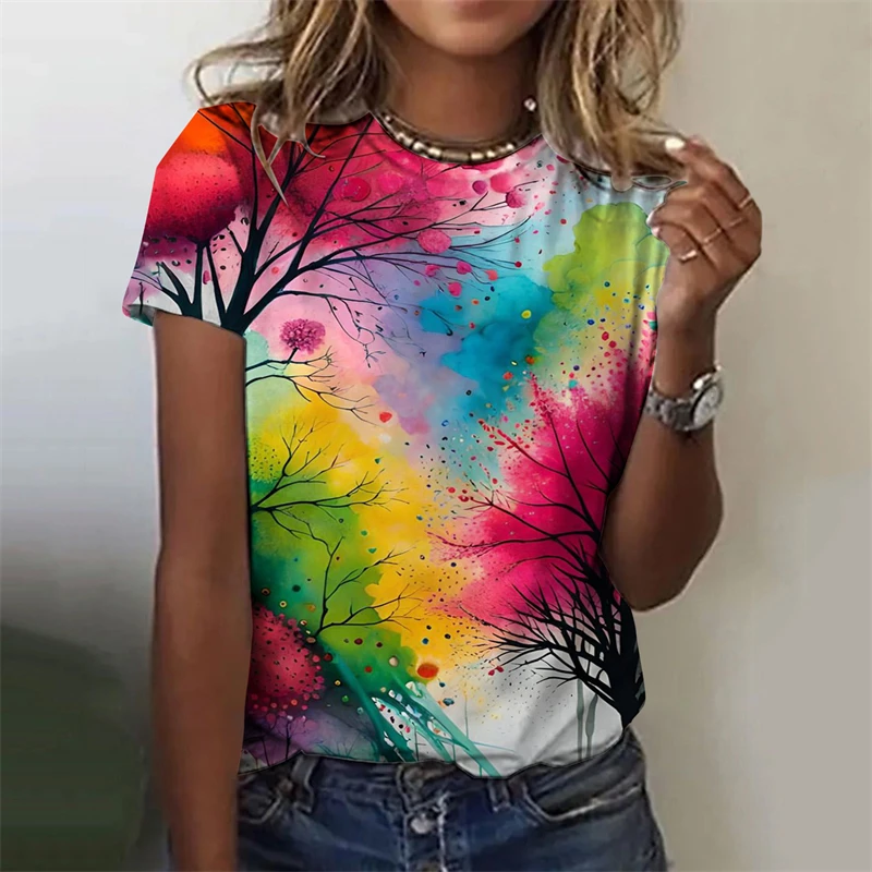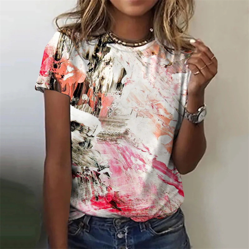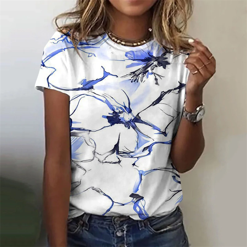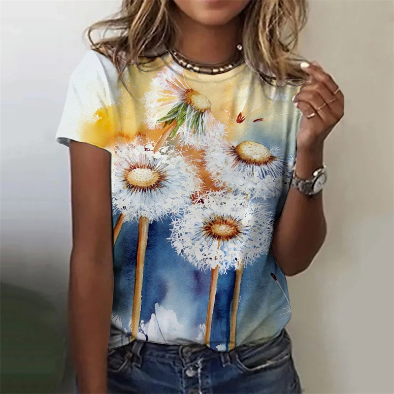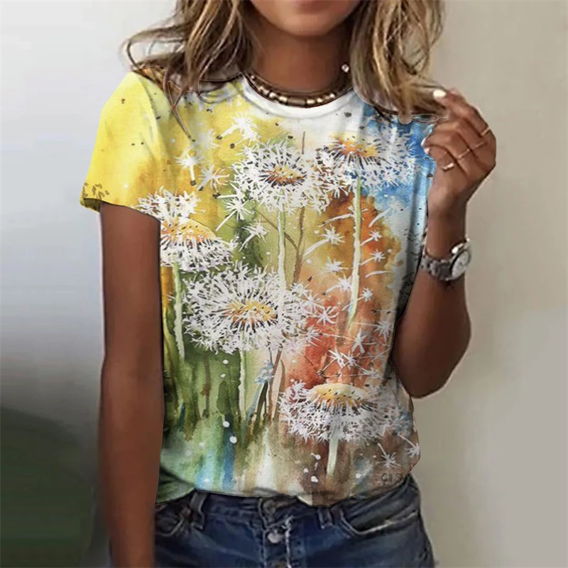 Women’s T-Shirts Flowers Fashion Print O Neck Short Sleeve Tees O-Neck Personality Women Summer Harajuku Loose Female Clothing