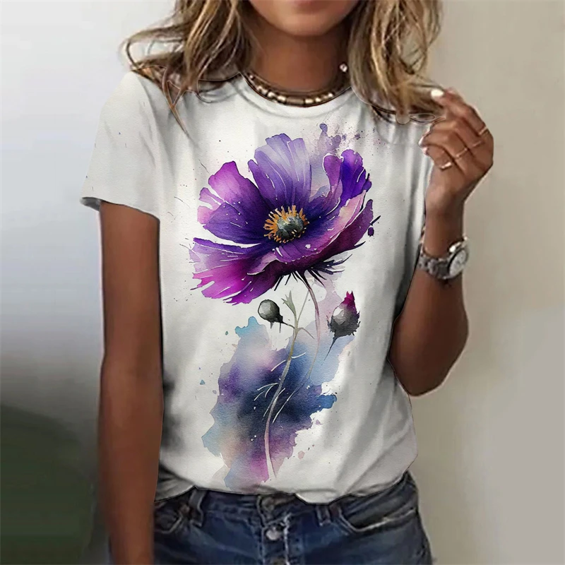 Be the first to review “Women’s T-Shirts Flowers Fashion Print O Neck Short Sleeve Tees O-Neck Personality Women Summer Harajuku Loose Female Clothing”