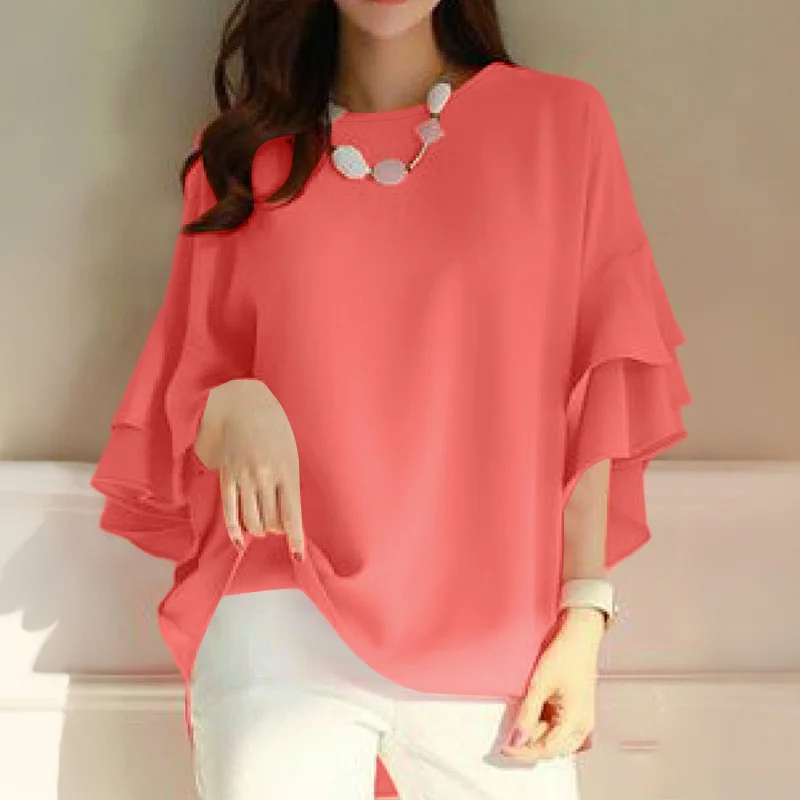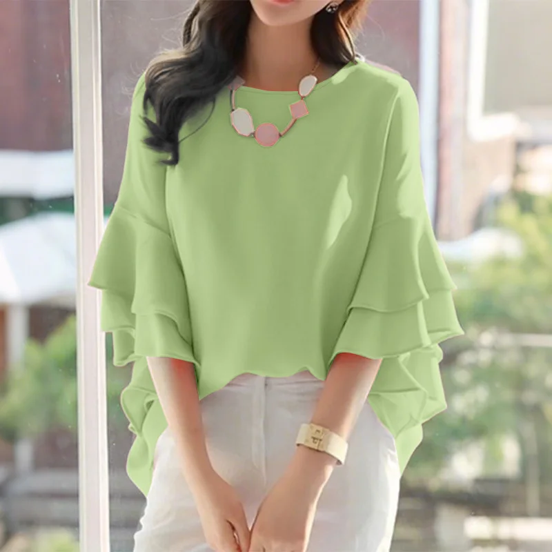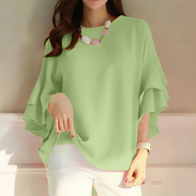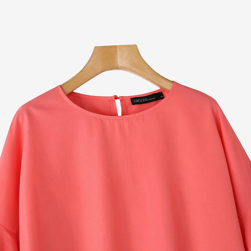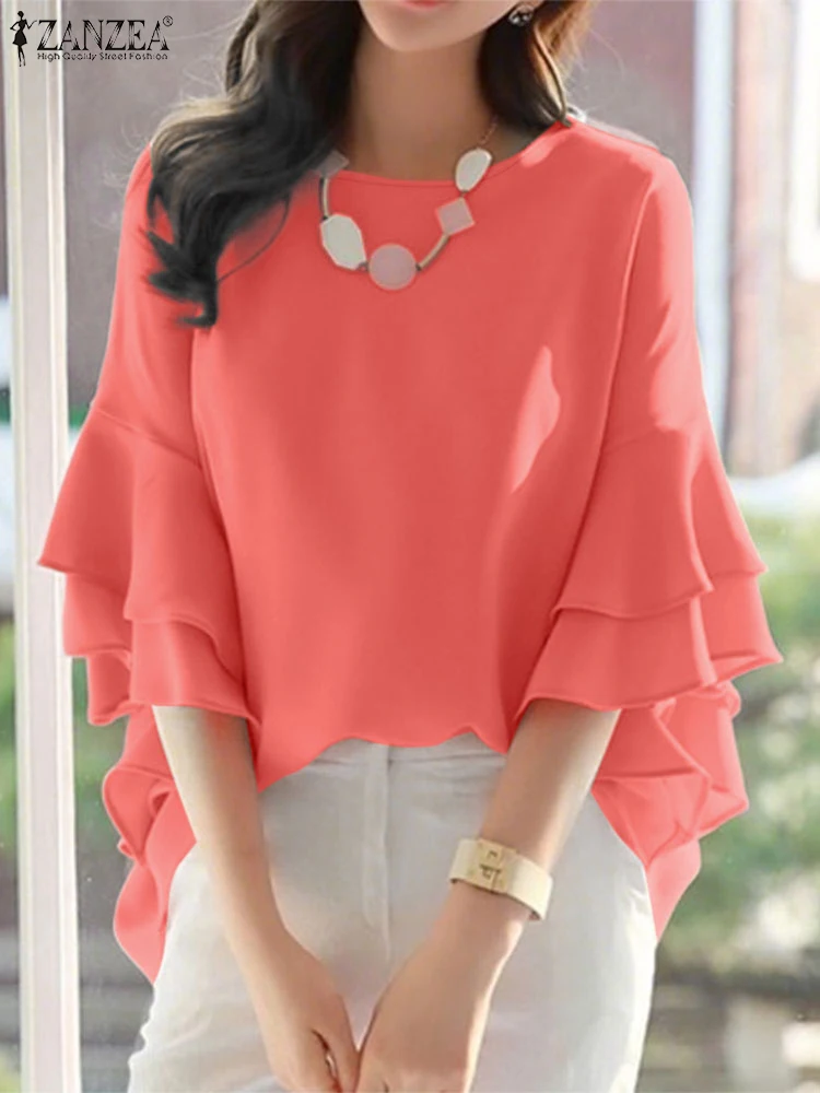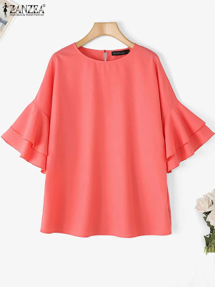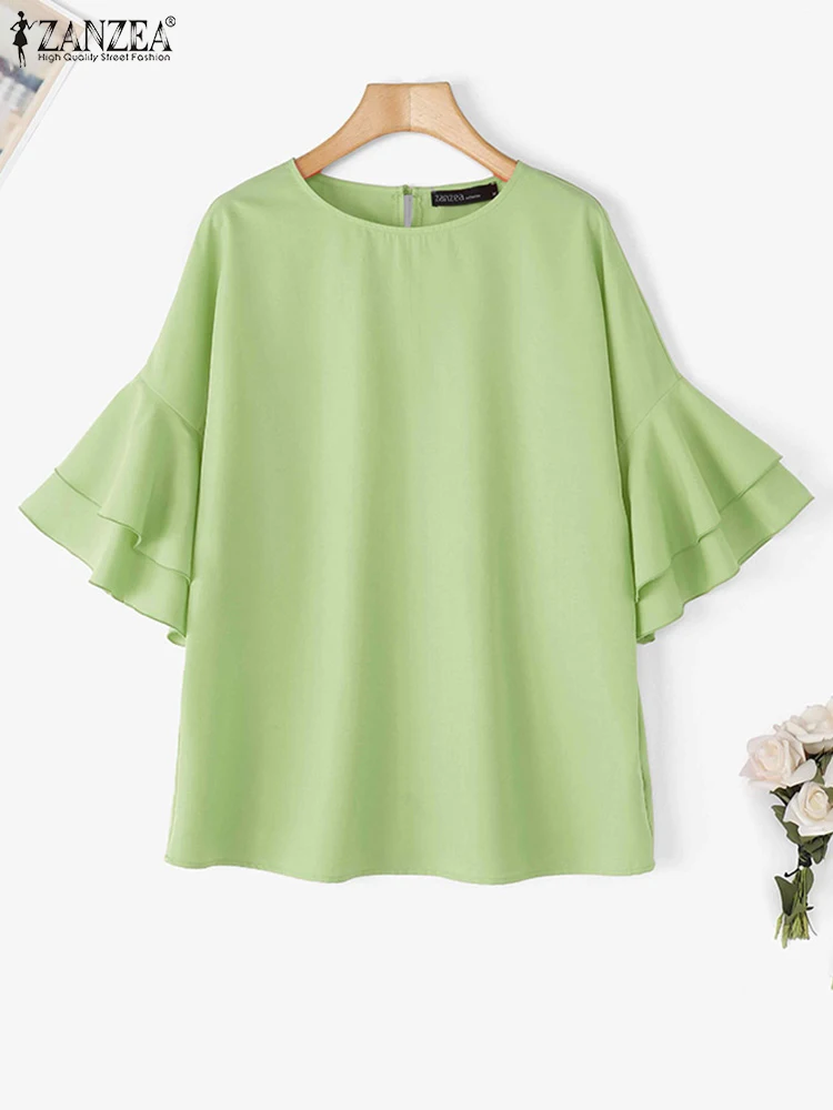 ZANZEA 2025 Fashion Summer Blouse Women Flare Sleeve Casual Tops Loose Ruffled Shirts Solid Color Elegant OL Blusas Femininas