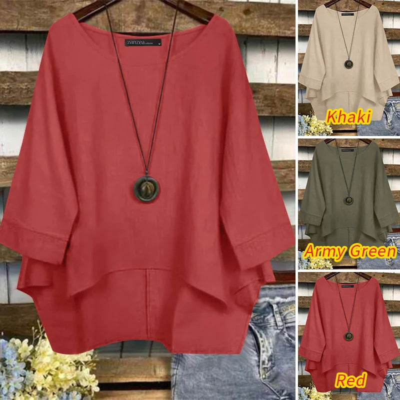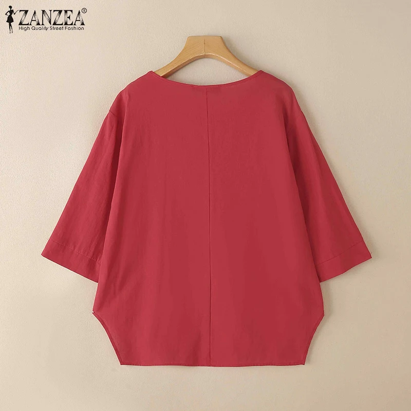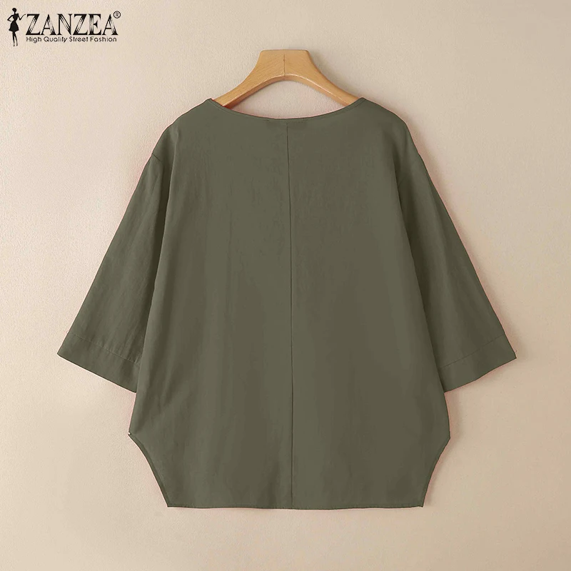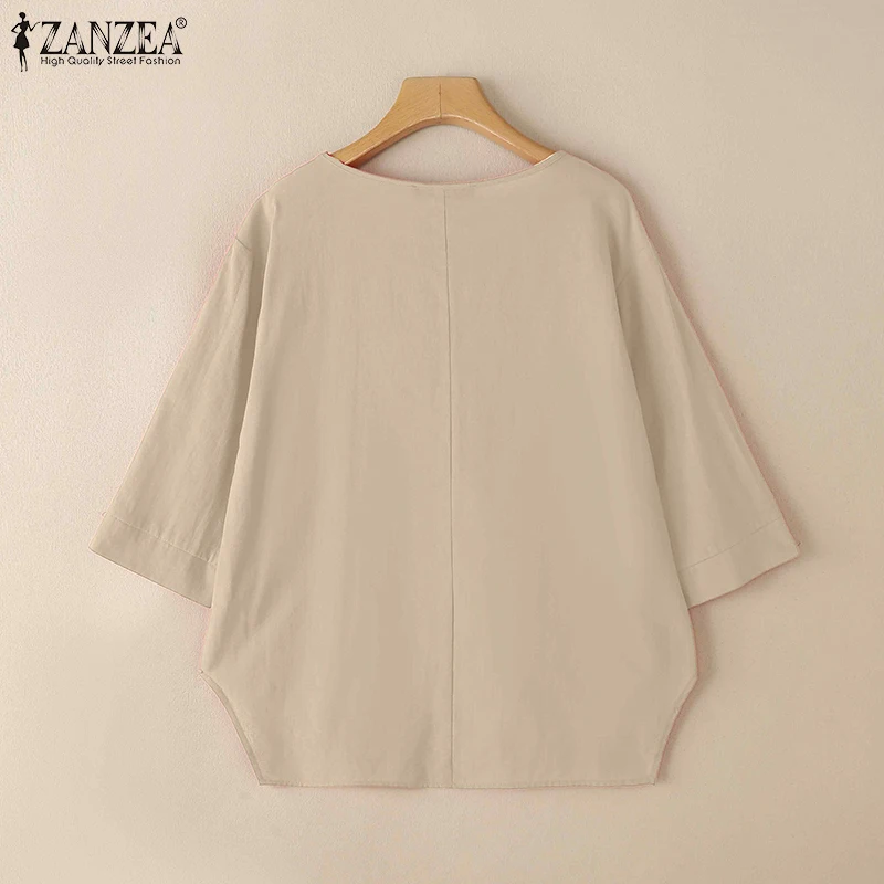 Be the first to review “ZANZEA Casual 2025 Summer Blusas Mujer Woman Cotton Asymmetrical Hem High-Low Blouses 3/4 Sleeve Loose O-Neck Everyday Tops”