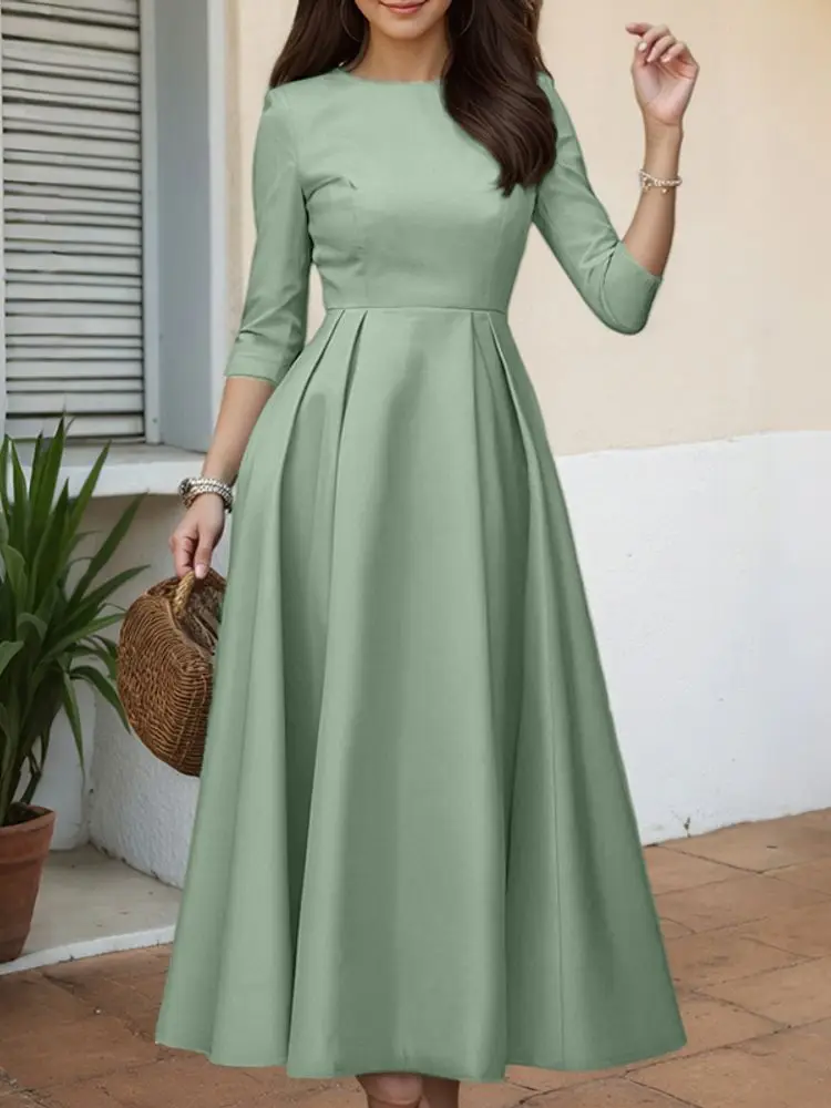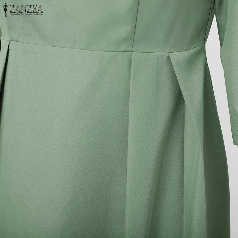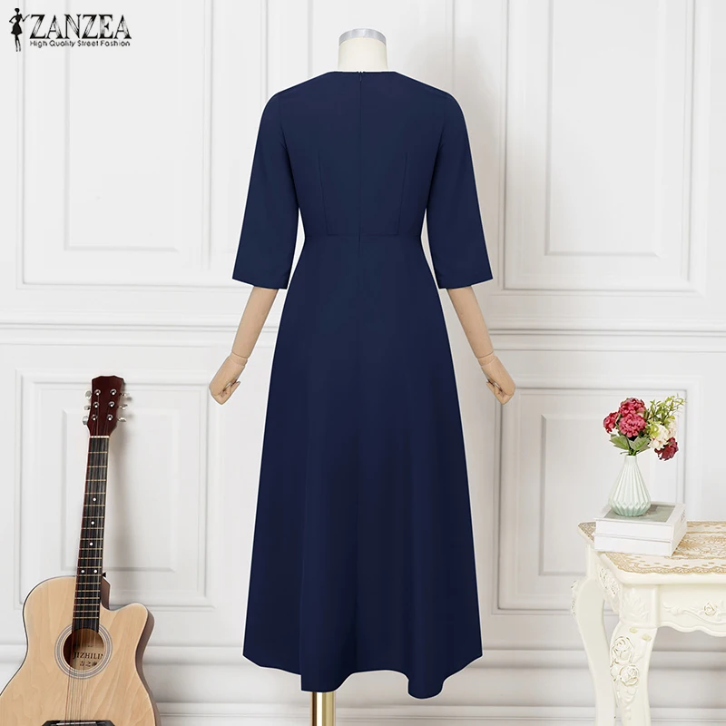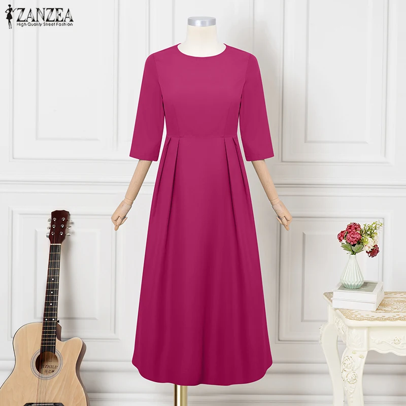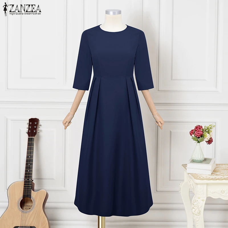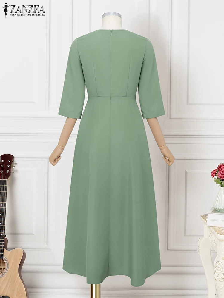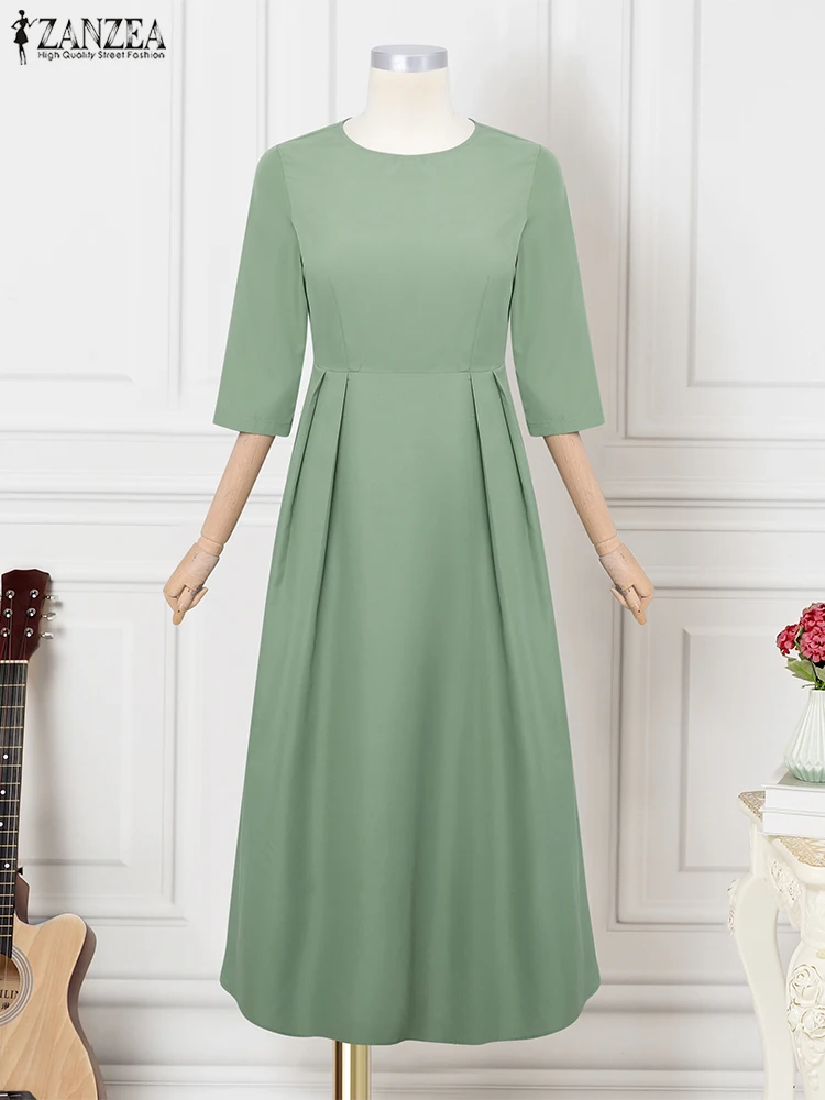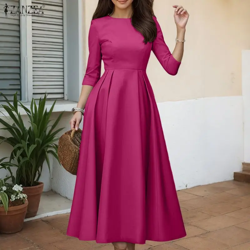 ZANZEA Elegant Maxi Long Dress Women 3/4 Sleeve Office Sundress 2025 Fashion A-Line Party Vestido Solid European Casual Robe