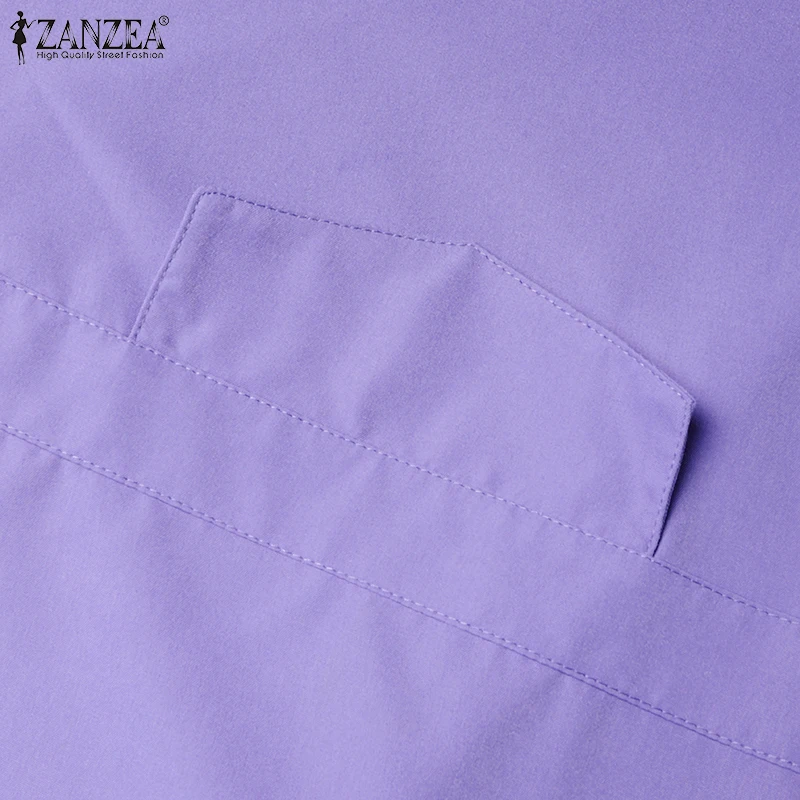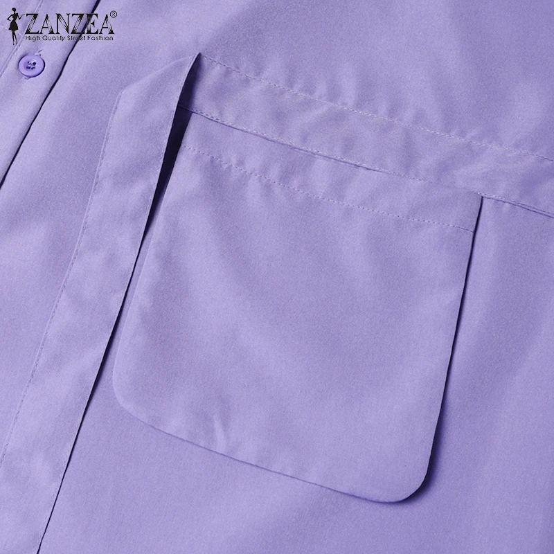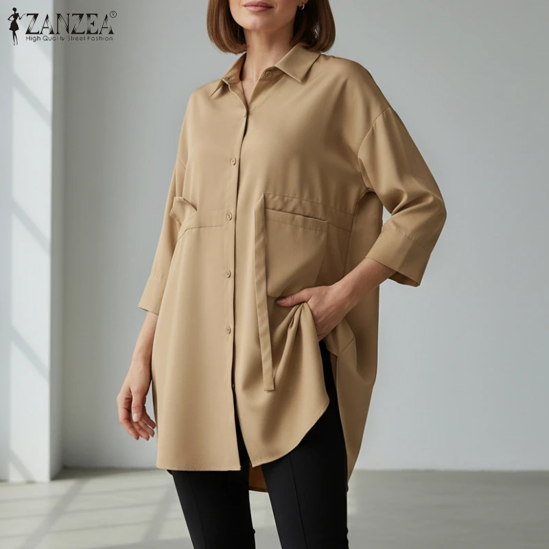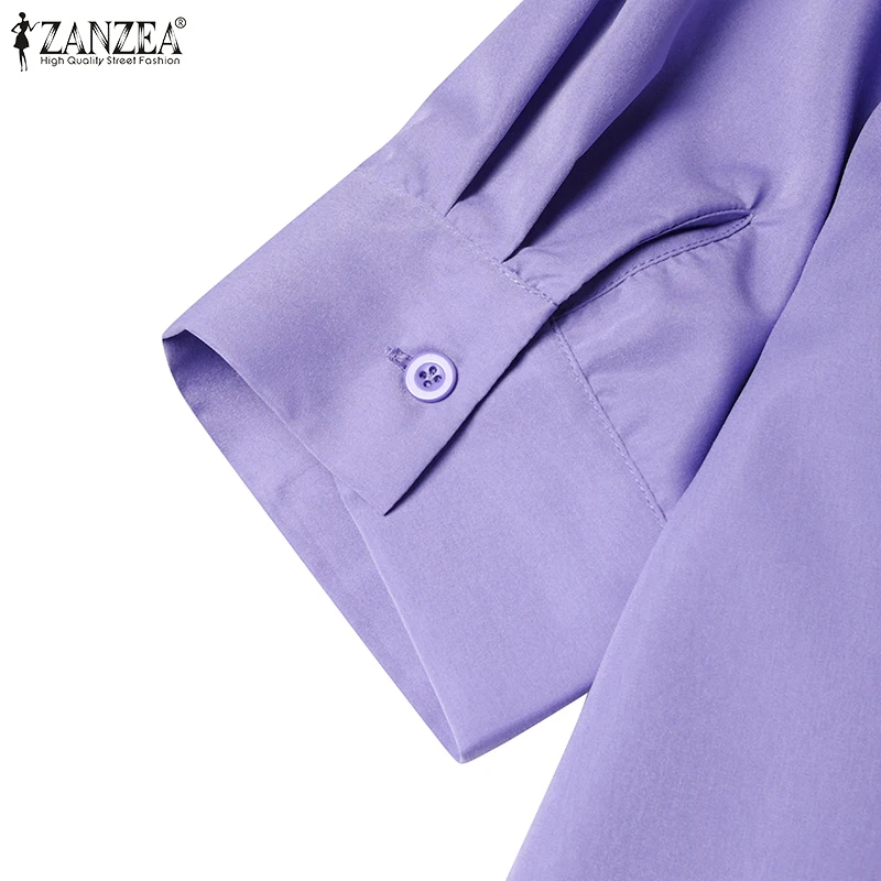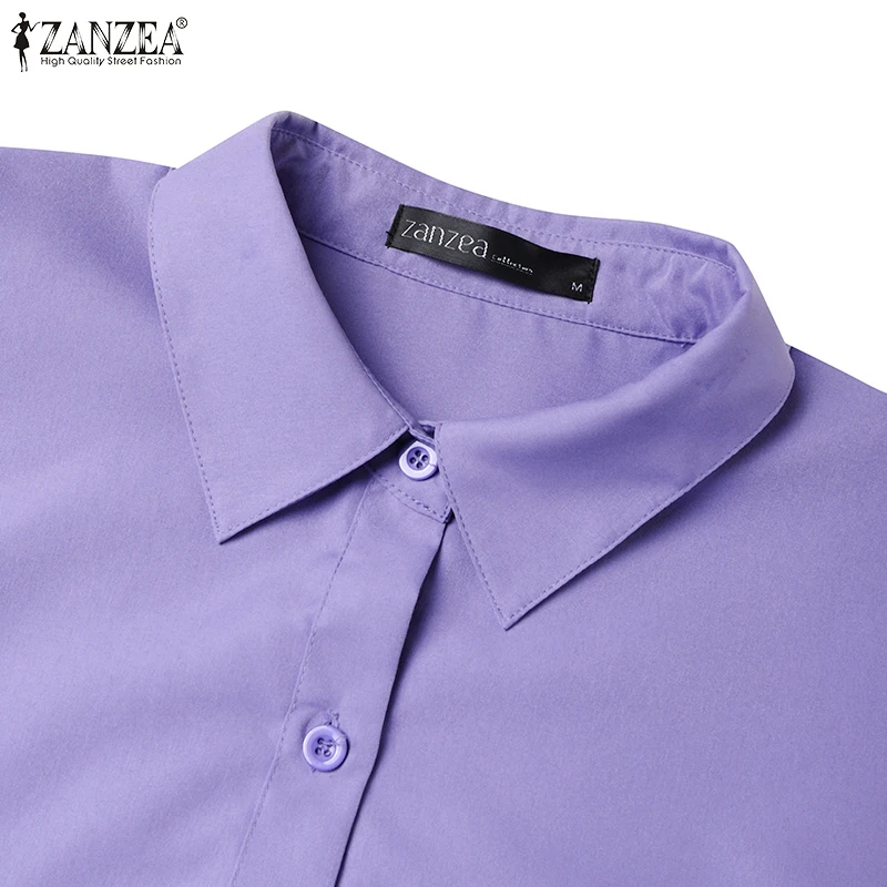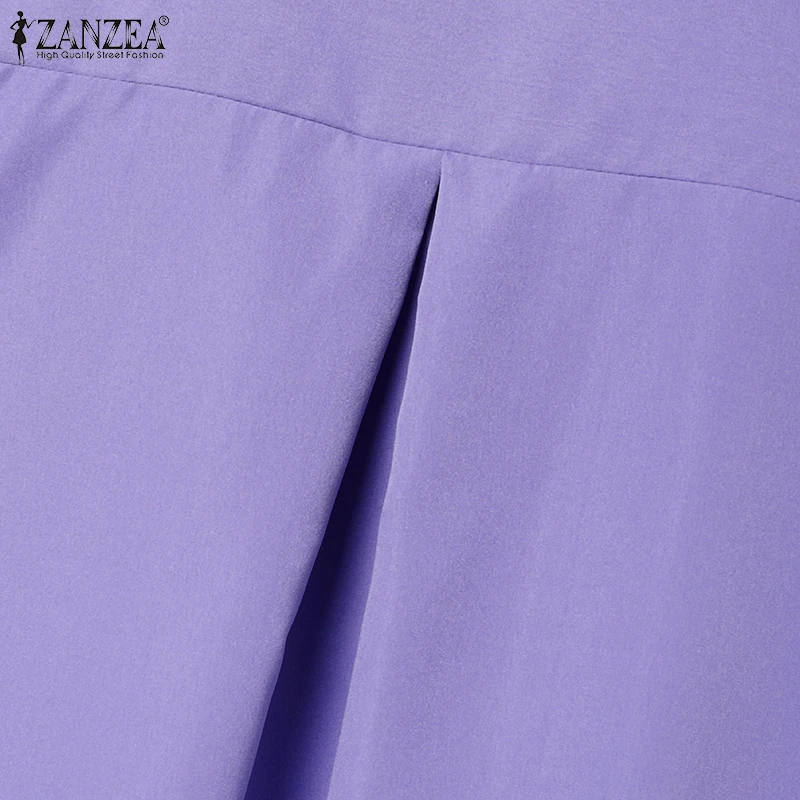 ZANZEA Plus Size Women’s Oversized Long Shirts Minimalist Casual Chic Collared Button Up Blouse Spring Baggy Chemises Femme 5XL
