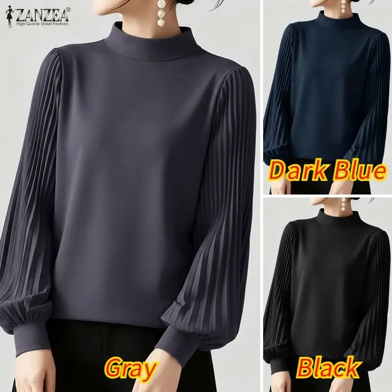Be the first to review “ZANZEA Spring Women’s Elegant Blouses Mock Neck Pleated Puff Sleeves Solid Color Pullover Tops Minimalist Casual Woman Clothes”