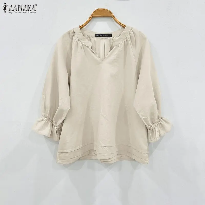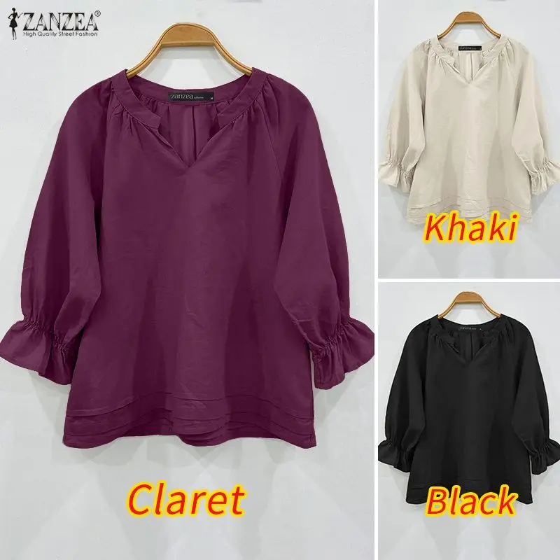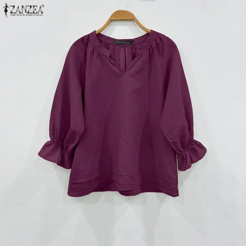 Be the first to review “ZANZEA Women’s Casual Pintuck Hem Blouses 2025 Autumn V-Neck 3/4 Raglan Sleeve Elastic Cuffs Solid Color Pullover Tops S-3XL”