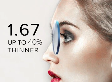 Our 1.67 index thin, Lightweight, and impact-resistant